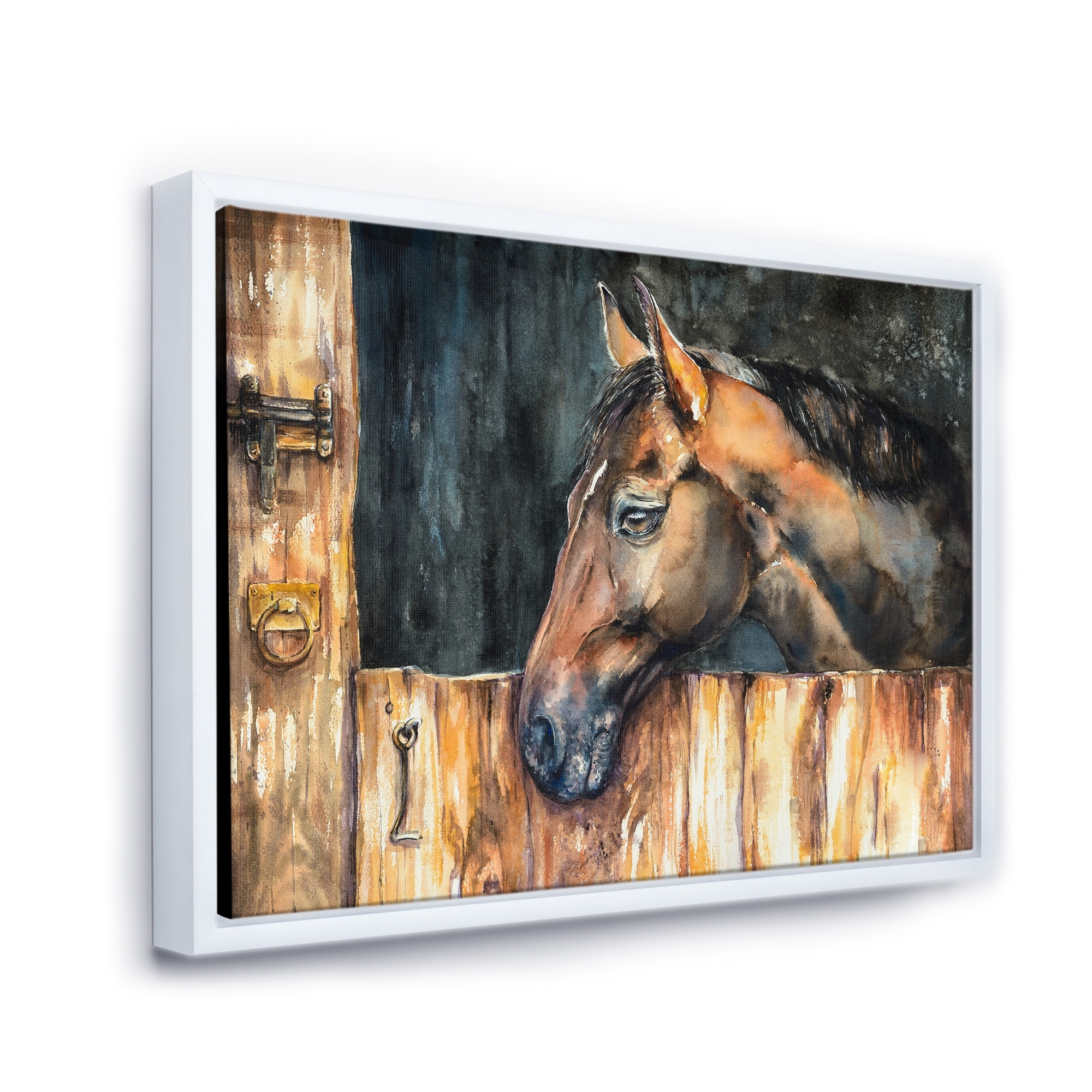 Designart "The Head of a Horse in Stable" Farmhouse Framed Canvas Wall Art Print