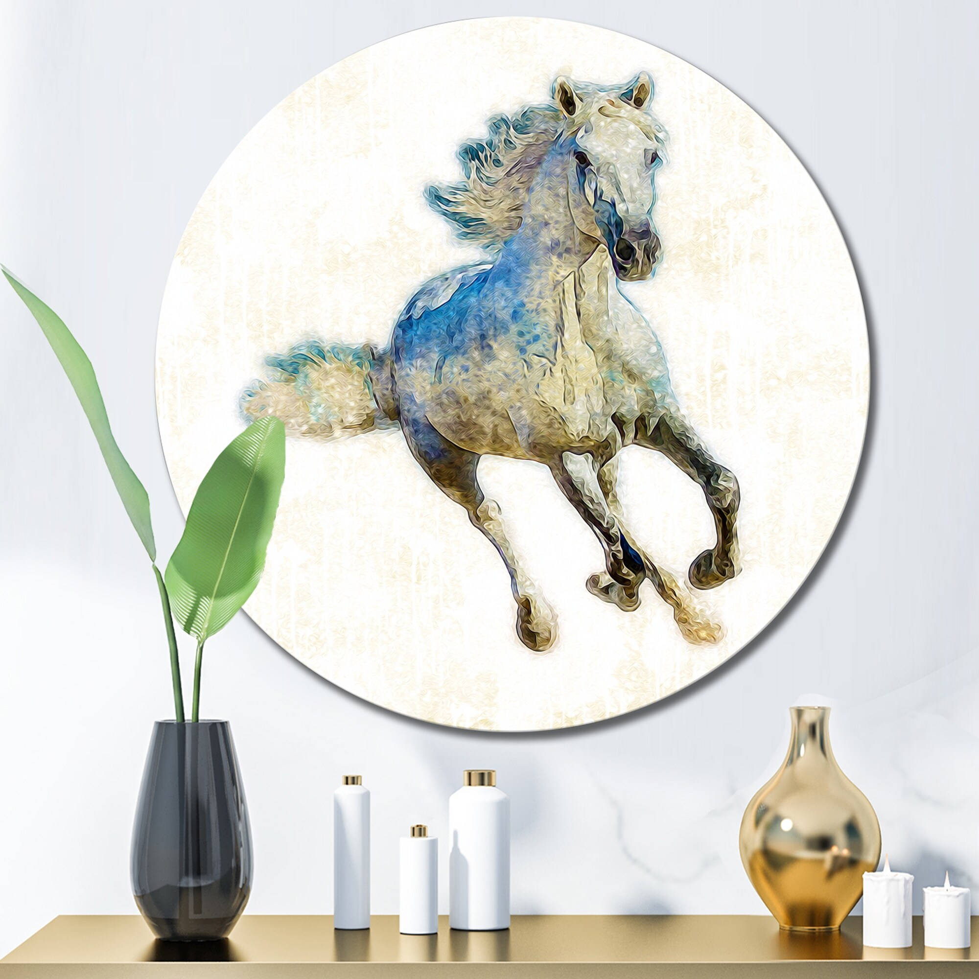 Designart 'Colorful Horse With Inner Landscape' Traditional Metal Circle Wall Art