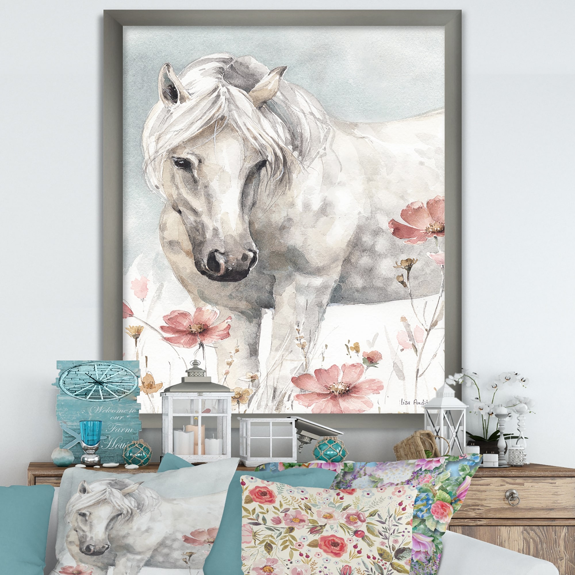 Designart "Portrait of a Light Blue Horse" Farmhouse Framed Canvas Wall Art Print
