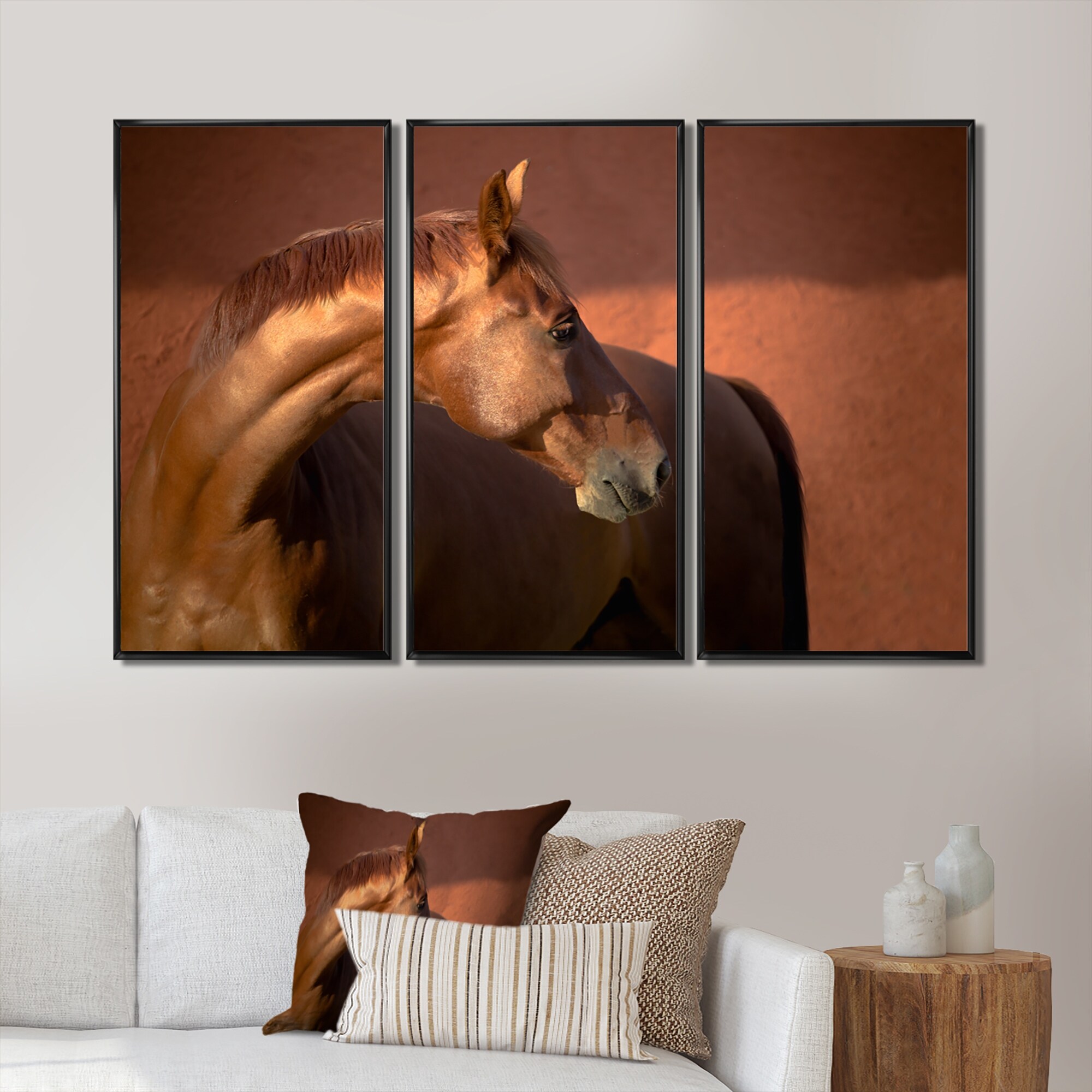Designart "Portrait Of the Chestnut Thoroughbred Horse" Traditional Framed Canvas Wall Art Print Set of 3 - 4 Colors of Frames