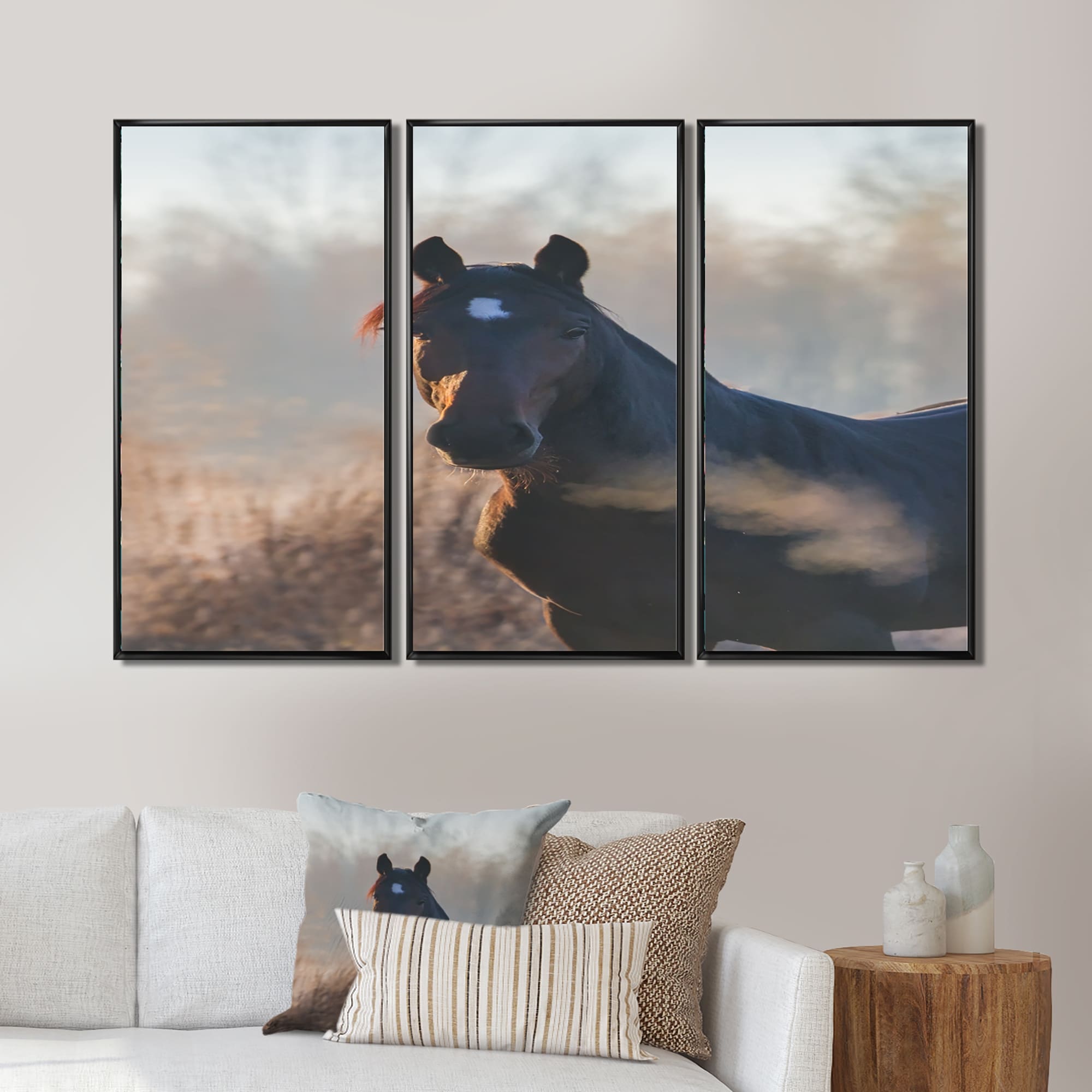 Designart "Portrait Of a Horse on an Autumn Morning" Farmhouse Framed Art Set of 3 - 4 Colors of Frames