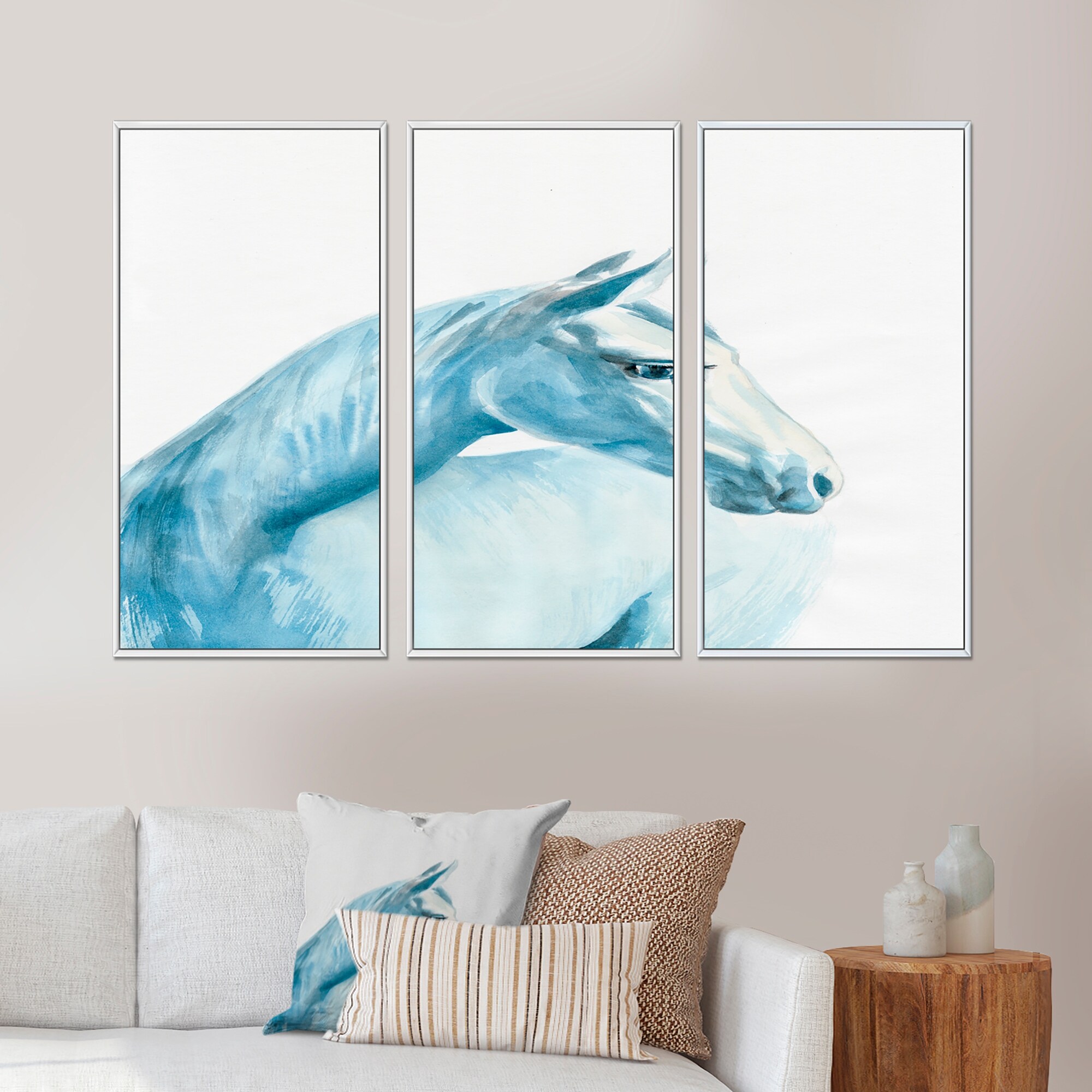 Designart "Portrait Of a LIght Blue Horse" Traditional Framed Art Prints Set of 3 - 4 Colors of Frames