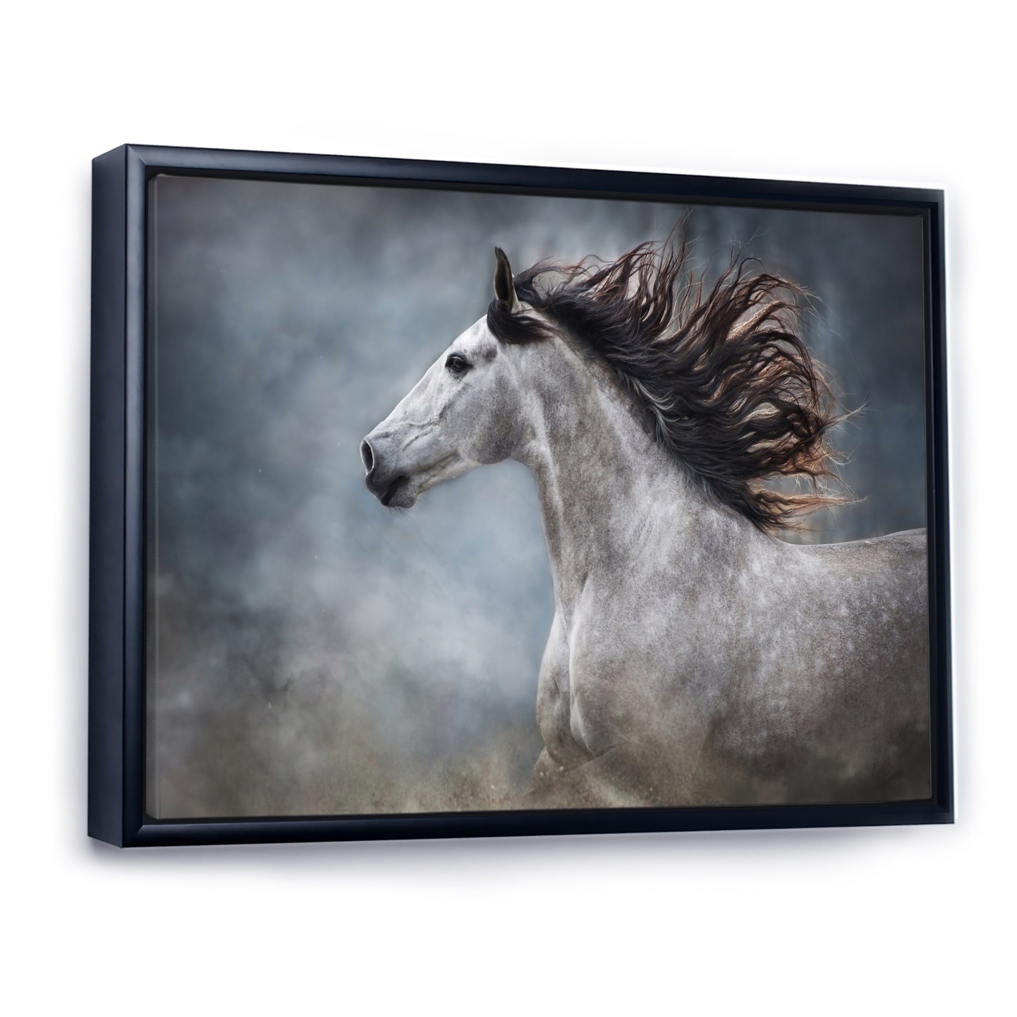 Designart "Portrait Of a Galloping White Horse II" Traditional Framed Canvas Wall Art Print