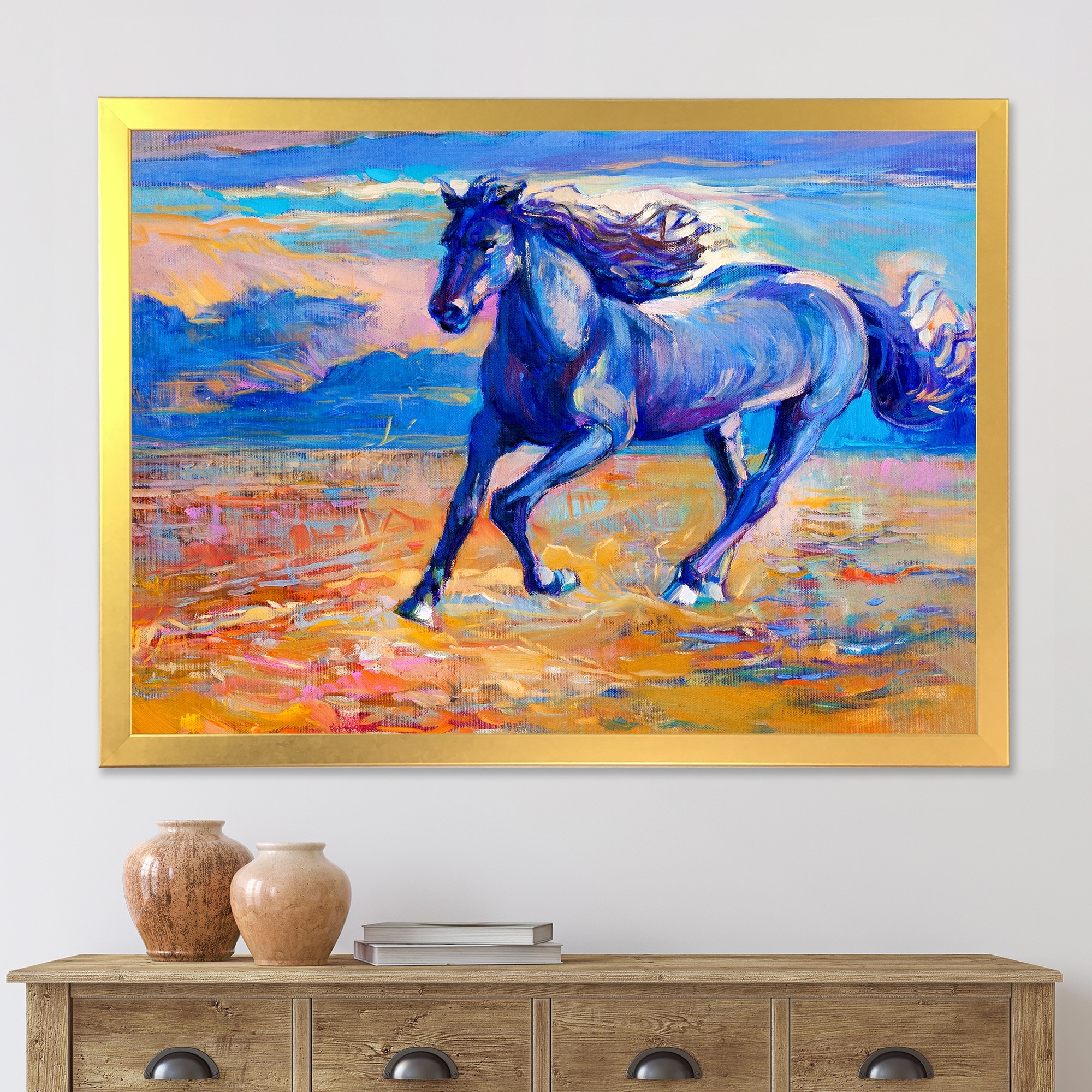 Designart "Blue Horse Galoping Over the Prairie" Farmhouse Framed Art Print