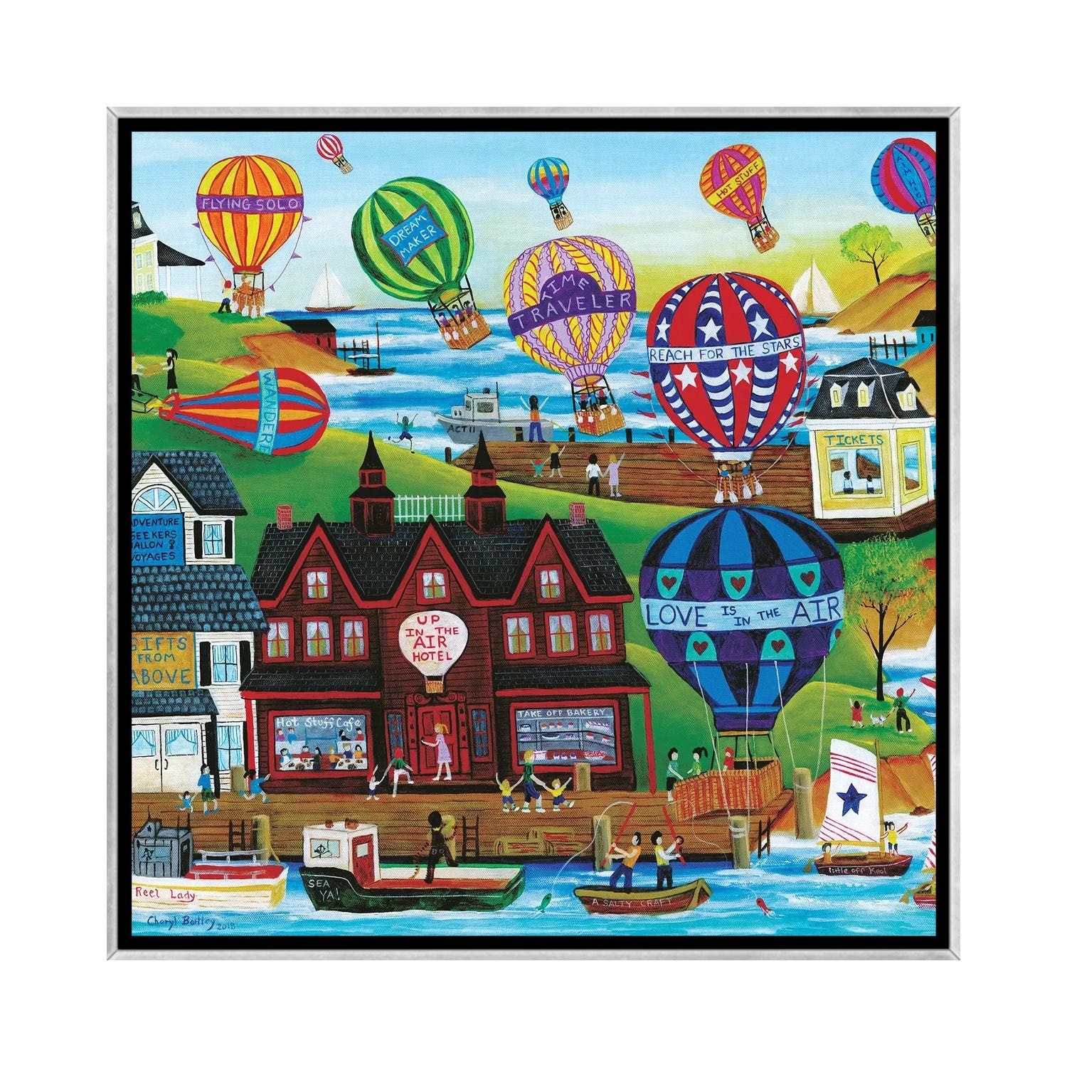 iCanvas "Hot Air Balloon Seaside Village" by Cheryl Bartley Framed