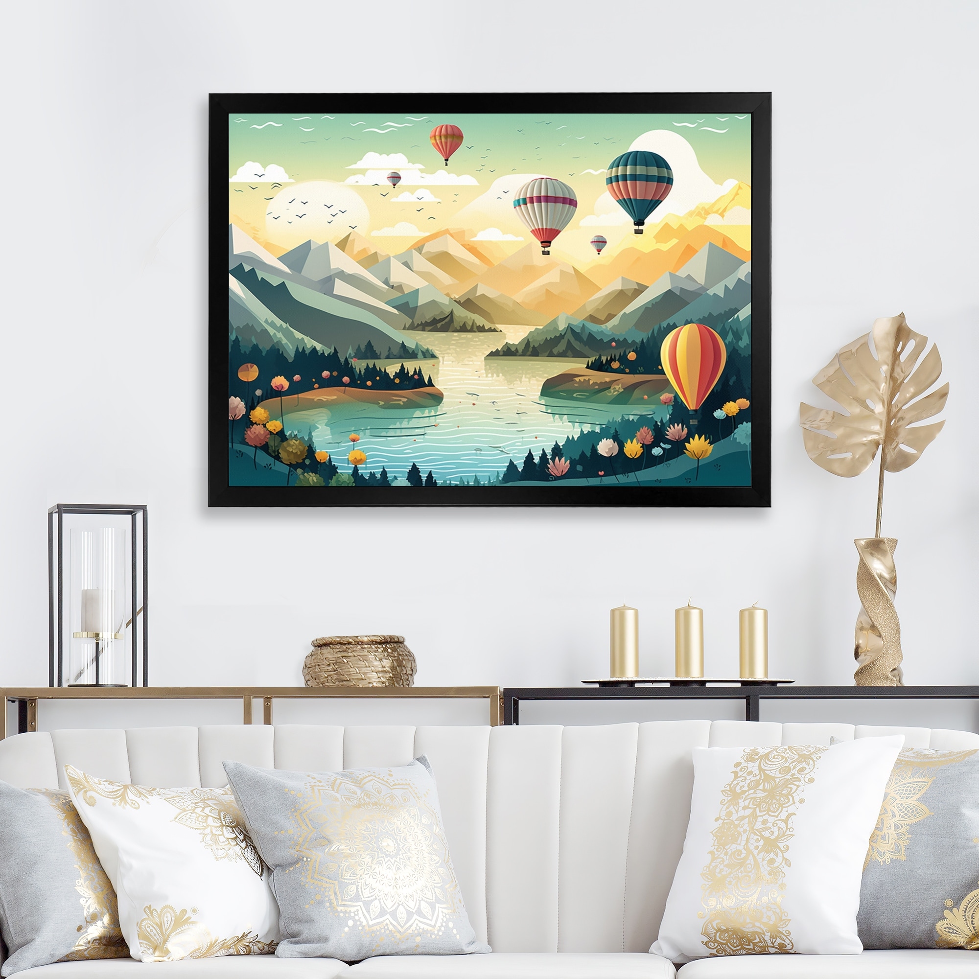 Designart "Hot Air Balloon Off Into the Sky Iv" Landscape Mountains Framed Wall Art Prints
