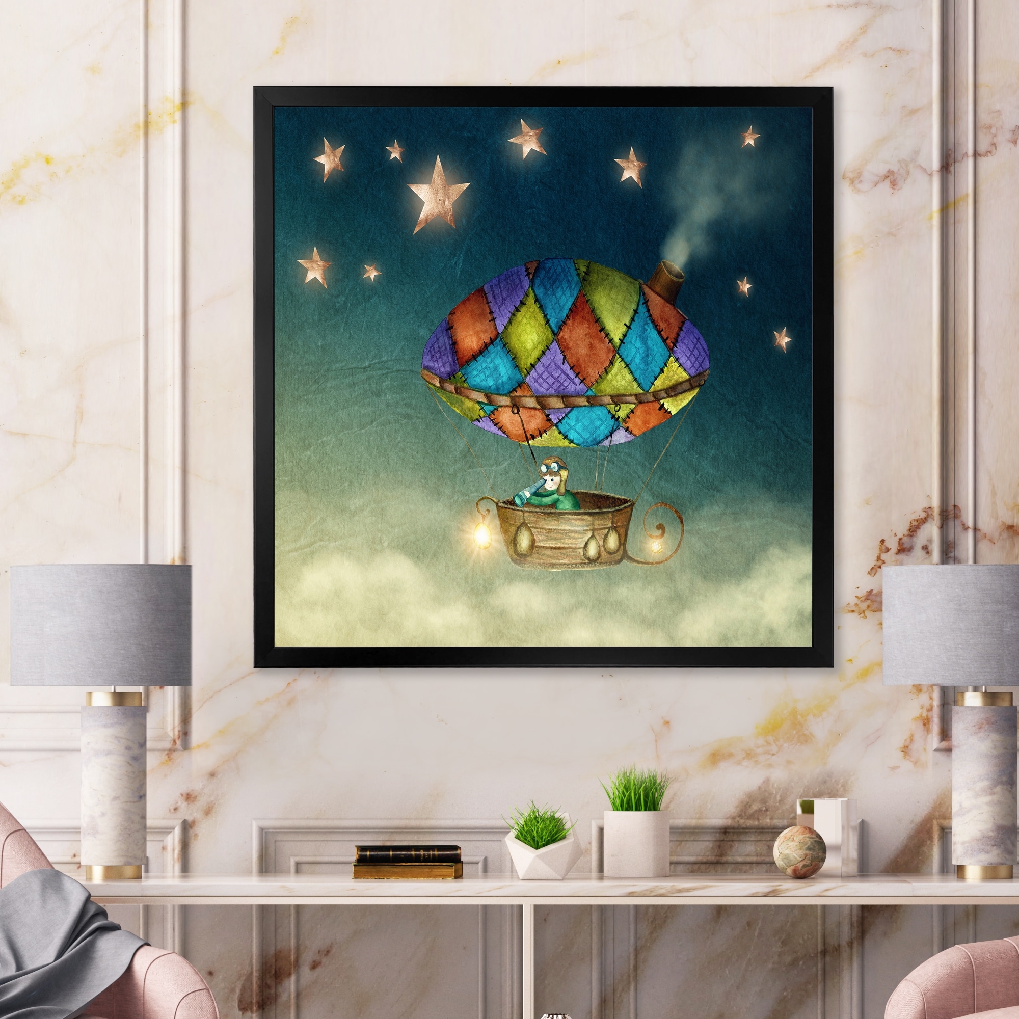 Designart "Hot Air Balloon in Starry Sky" Country Framed Art Print