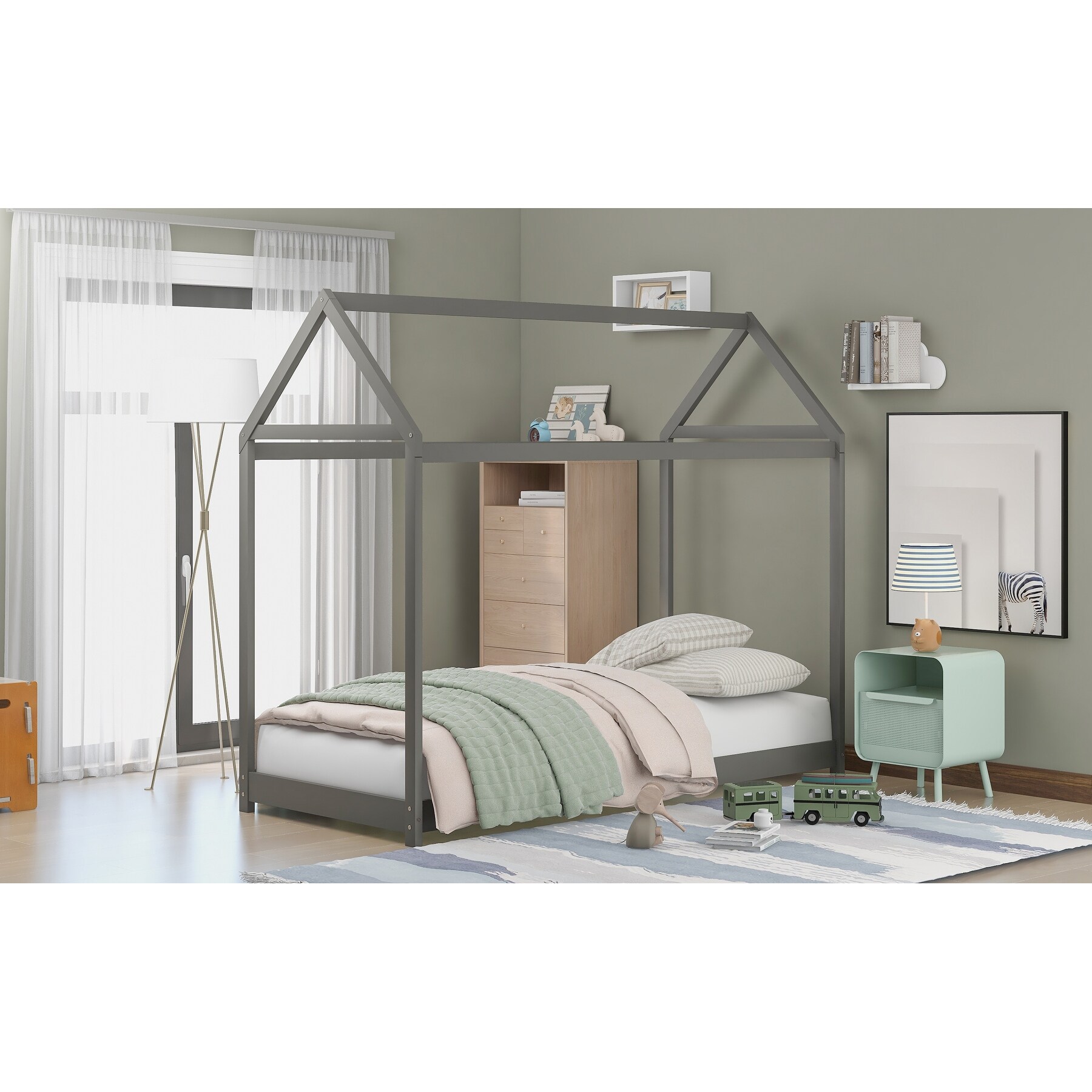 Twin Size House Platform Bed with Triangle Structure,Gray
