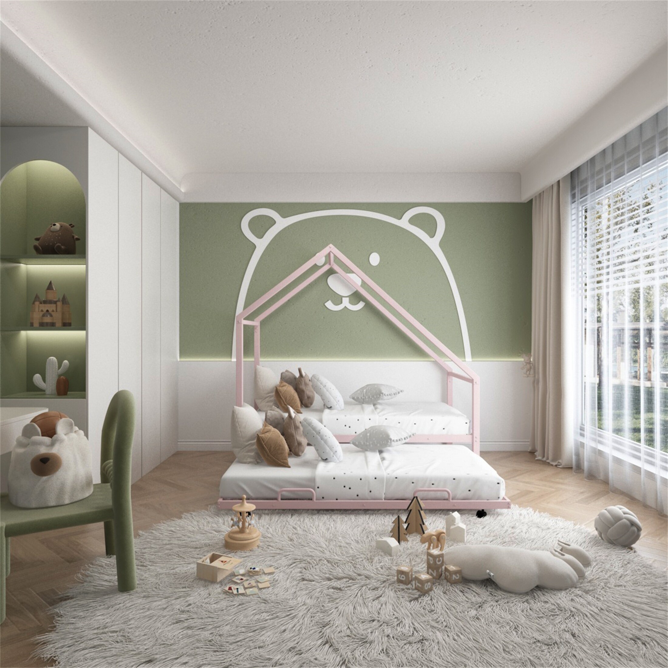 Full Size Wooden House Bed With Twin Size Trundle or No Trundle