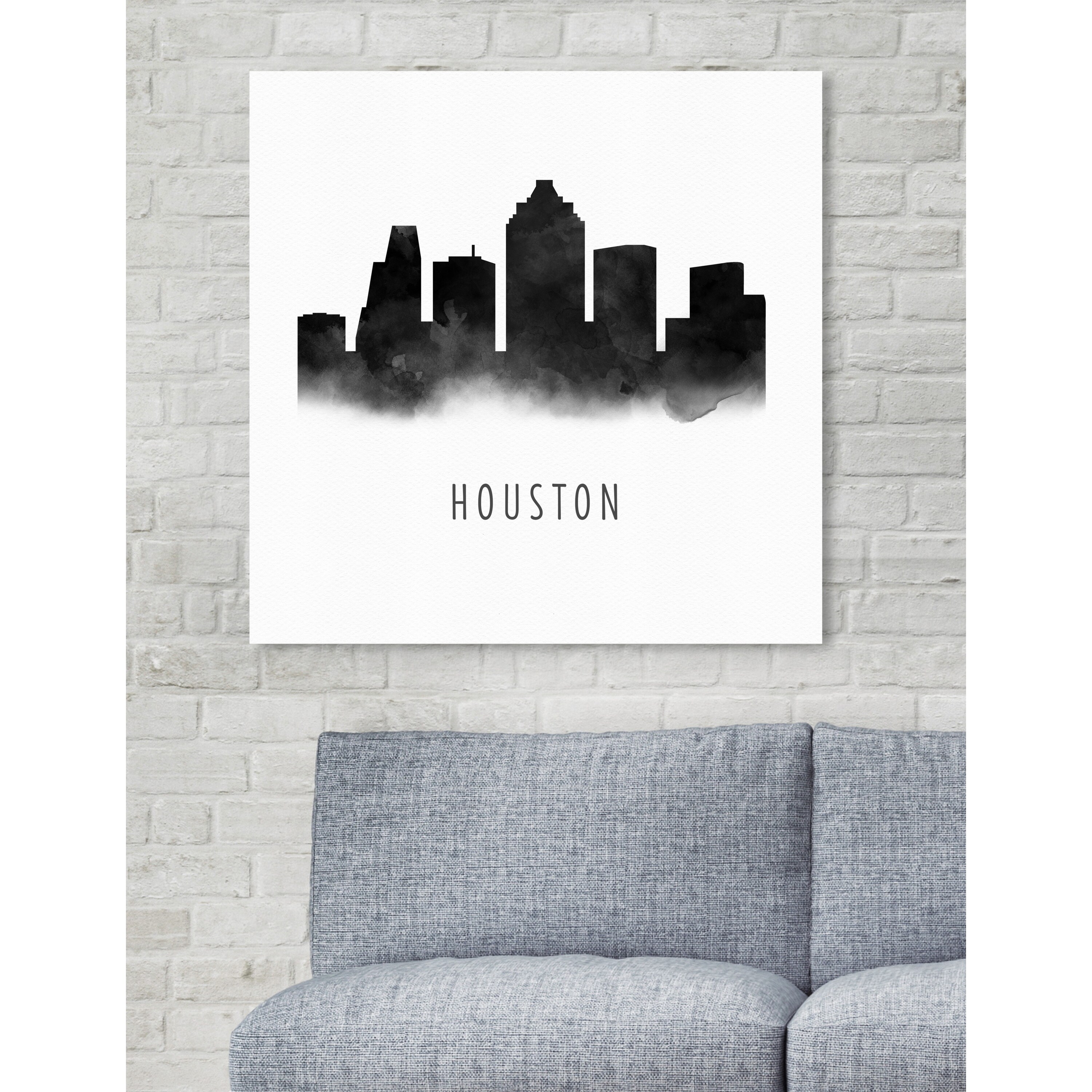 Oliver Gal 'Houston Watercolor' Cities and Skylines Wall Art Canvas Print - Black, White