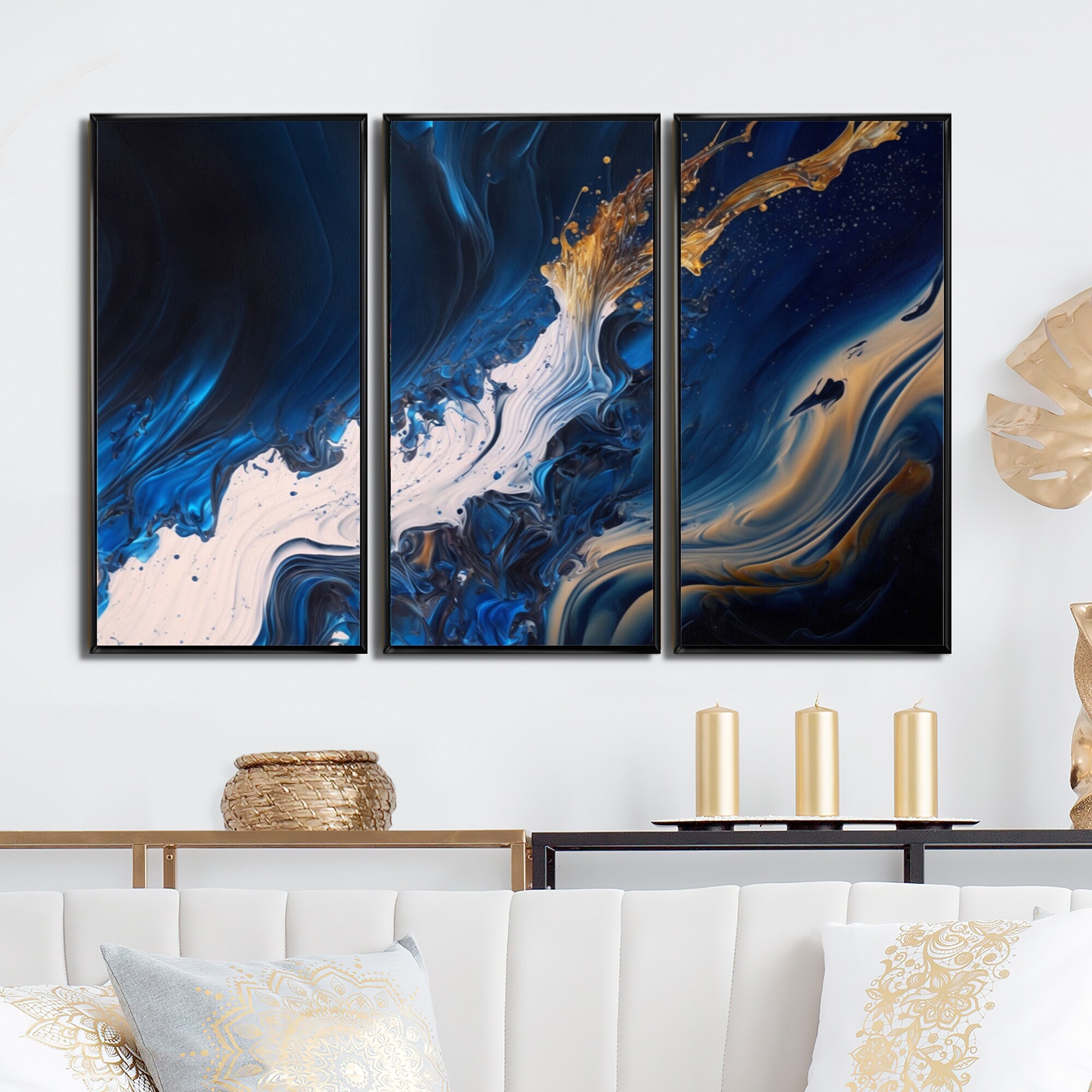 Designart "Ice Paint Splash II" Modern Spiral Framed Canvas Art Print - 3 Panels