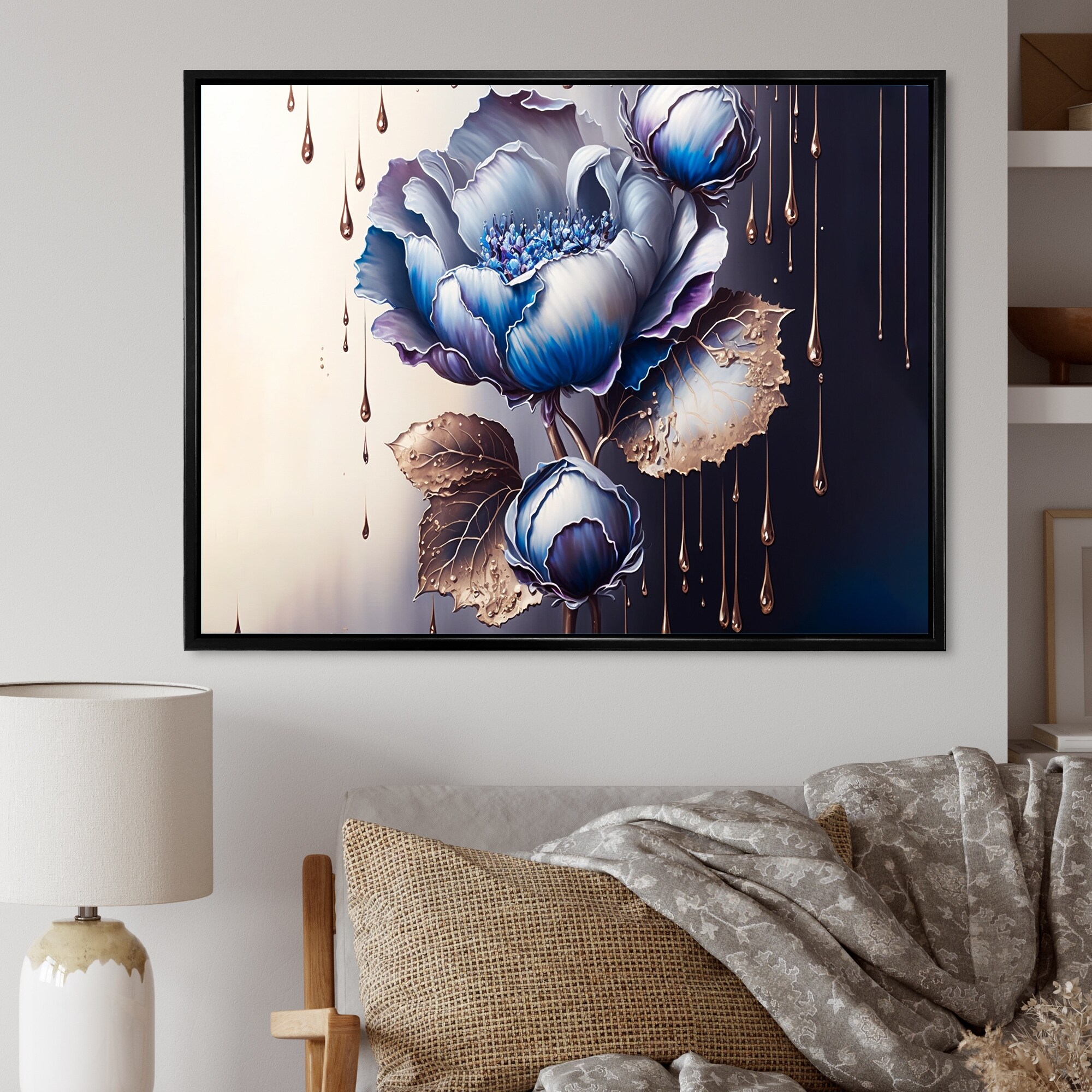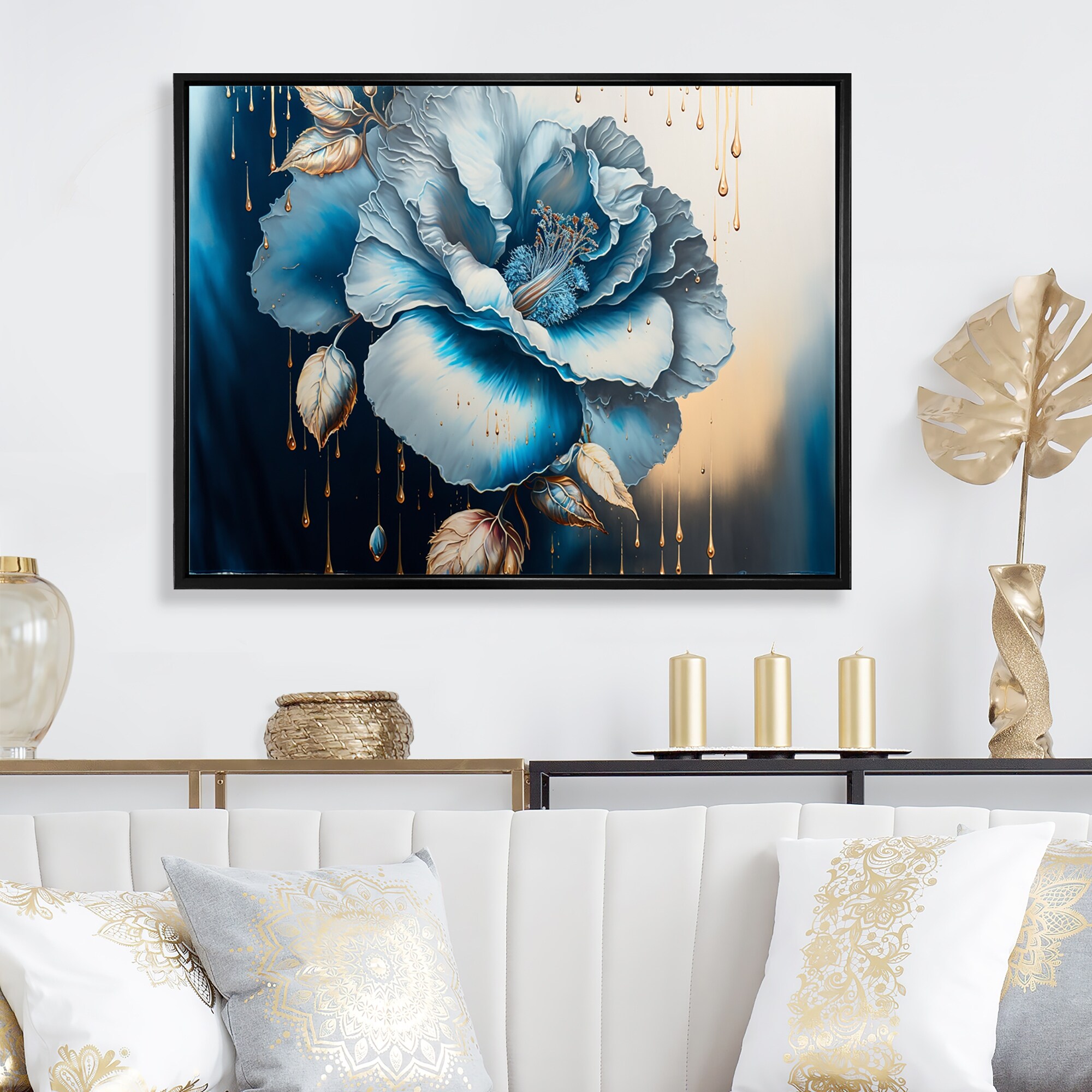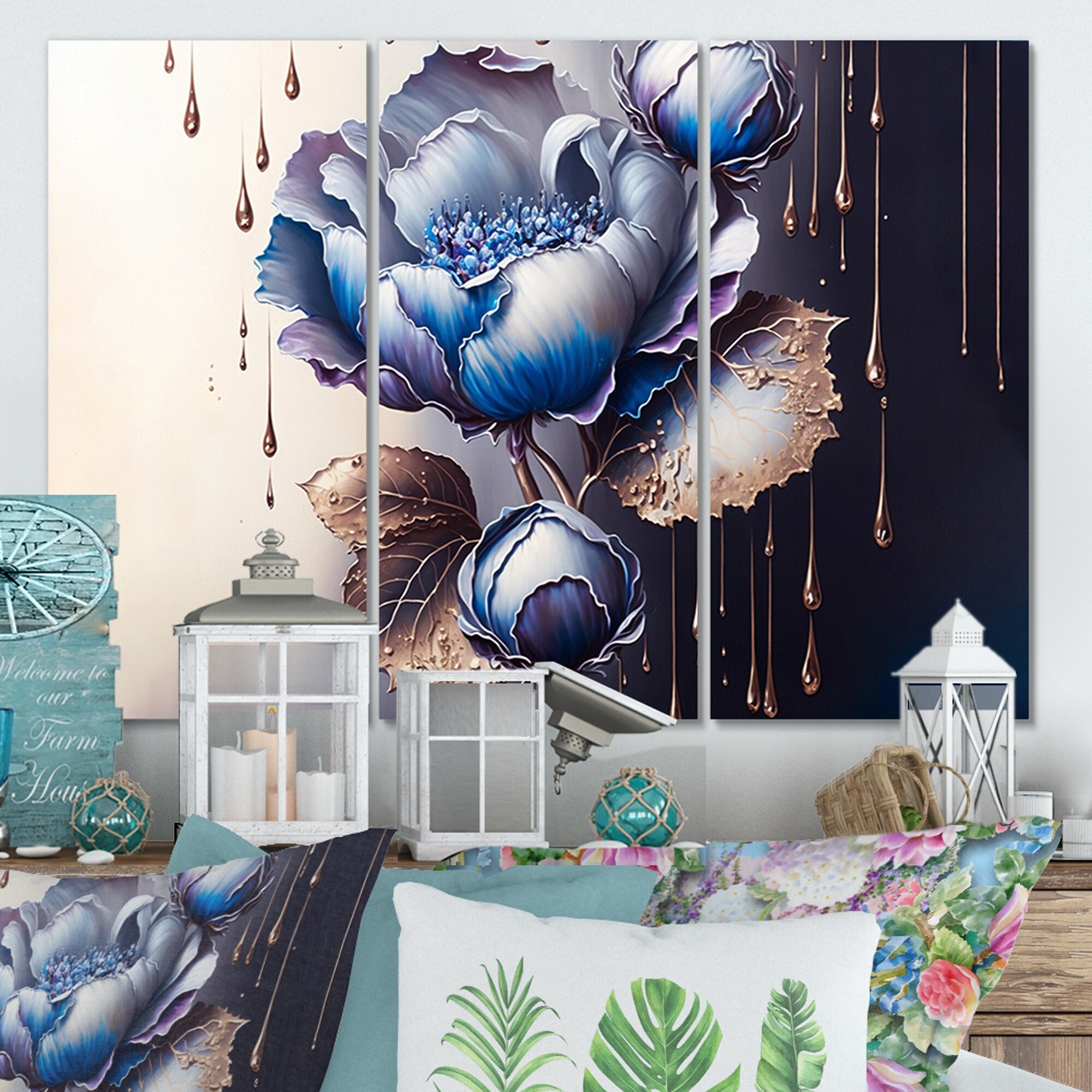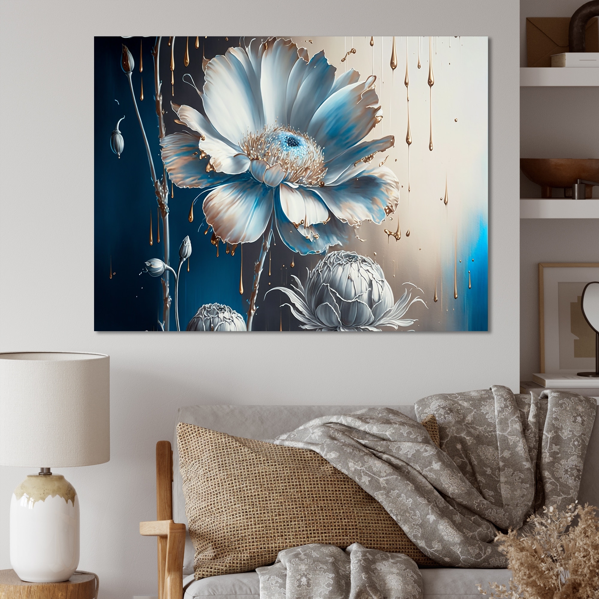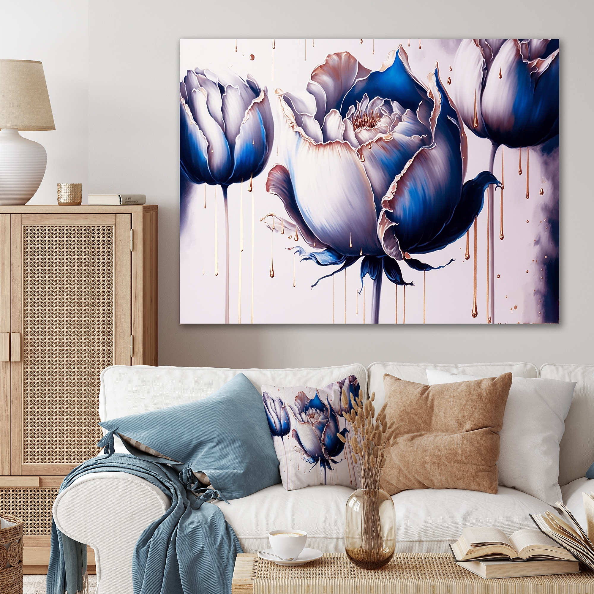 Designart 'Ice Blue And Gold Paint Drip Tulip II' Floral & Botanical Canvas Wall Art