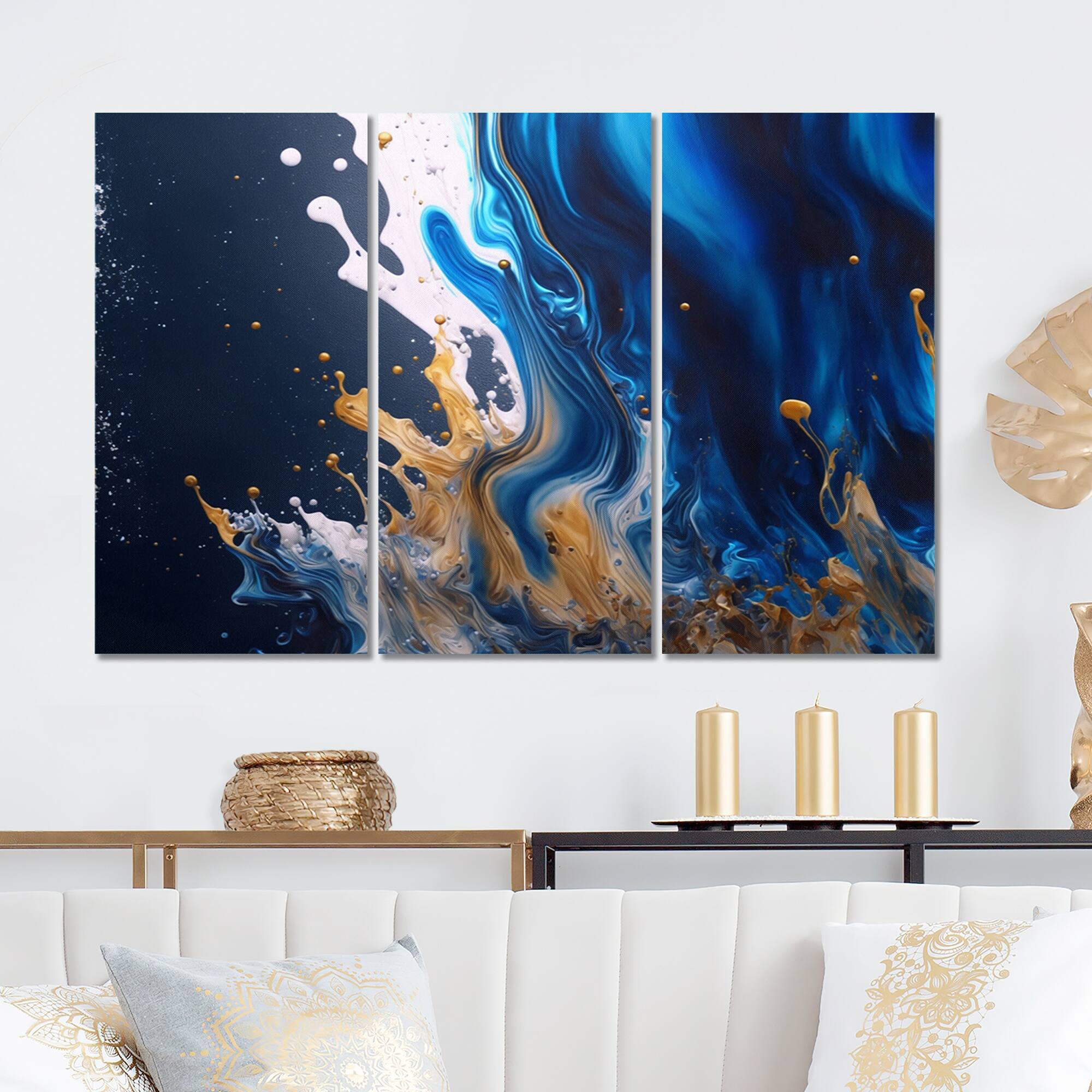 Designart "Ice Paint Splash I" Modern Spiral Canvas Art Print - 3 Panels