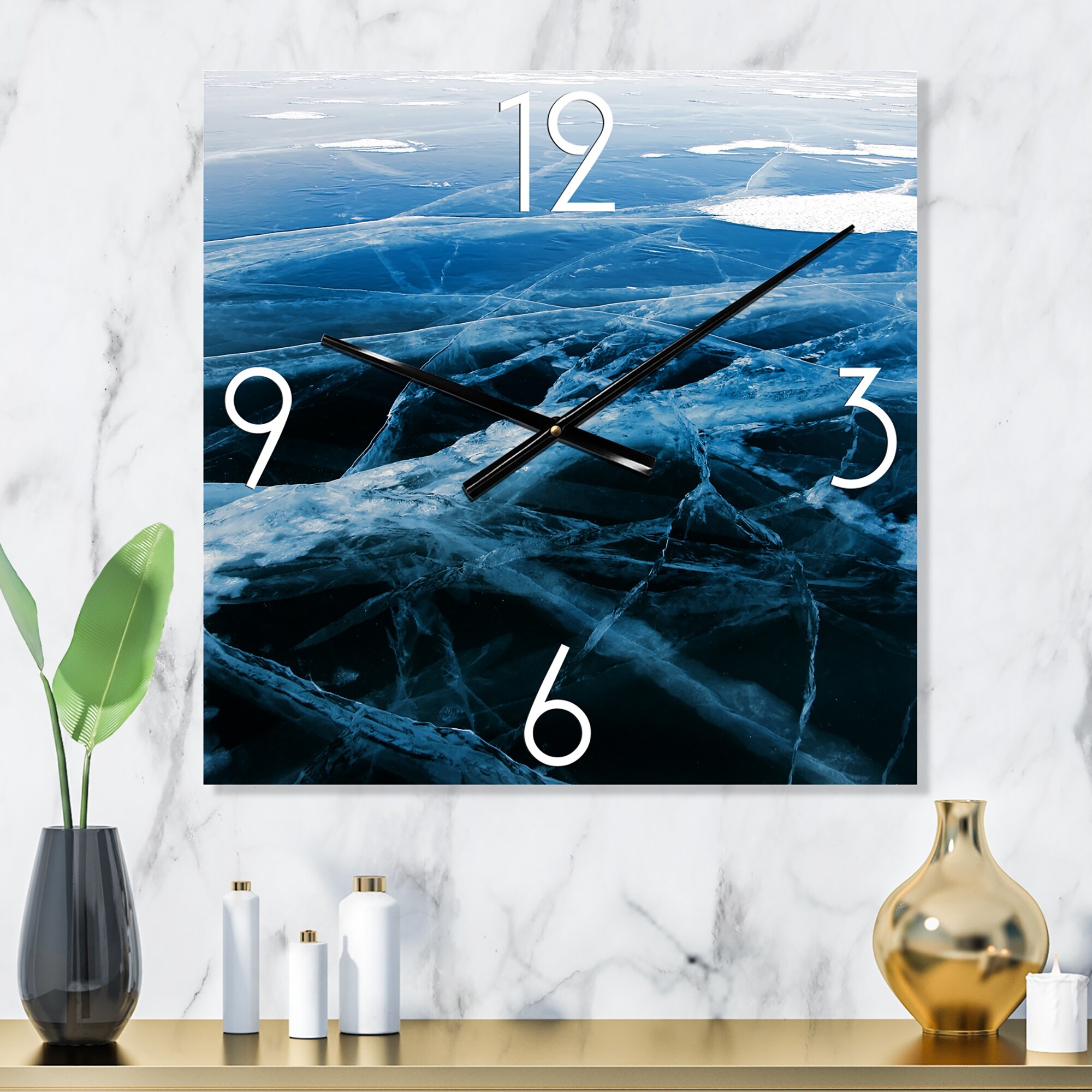 Designart 'Blue and White Ice Structure II' Modern Wall Clock Decor