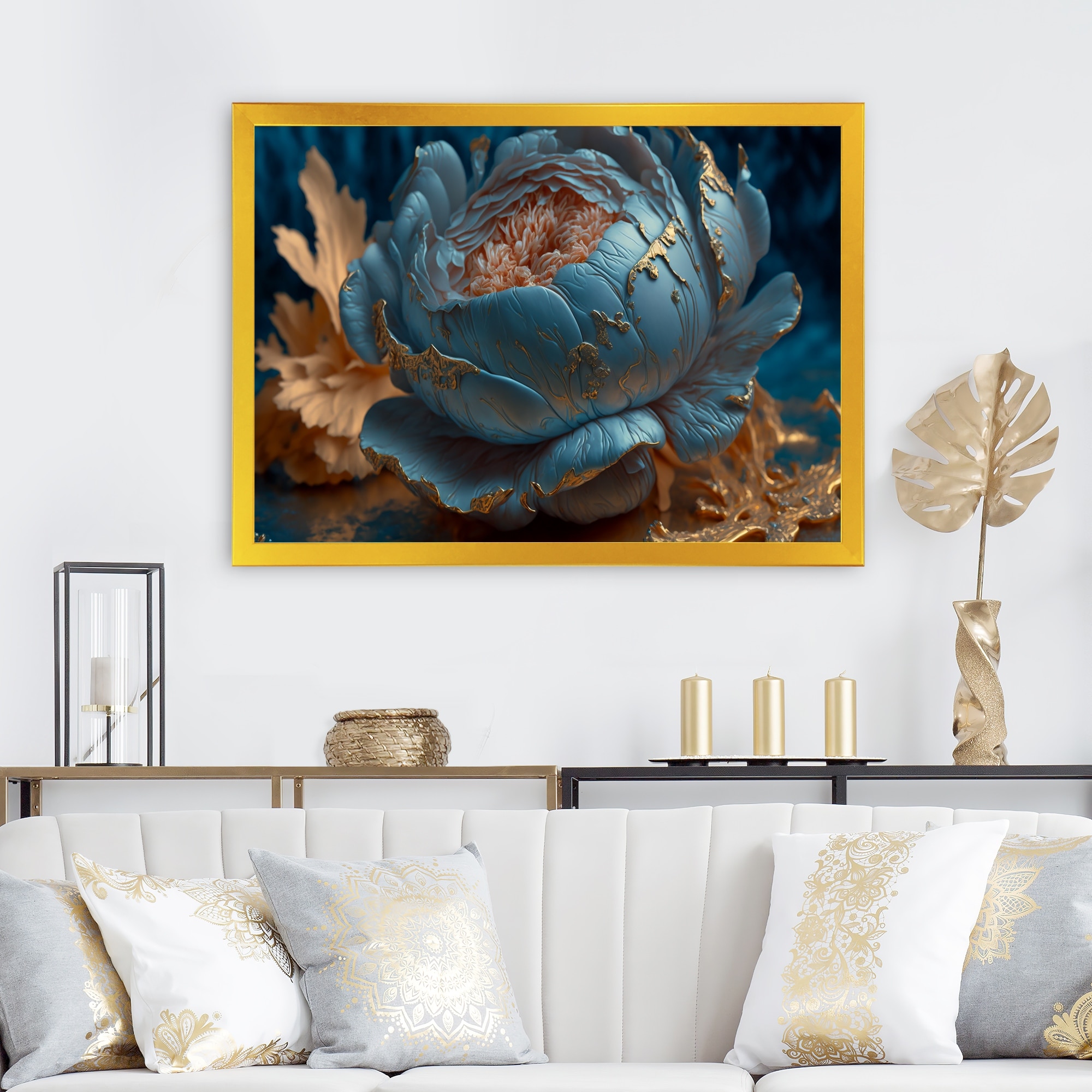 Designart "Ice Blue And Gold Peony II" Floral & Botanical Framed Art Print