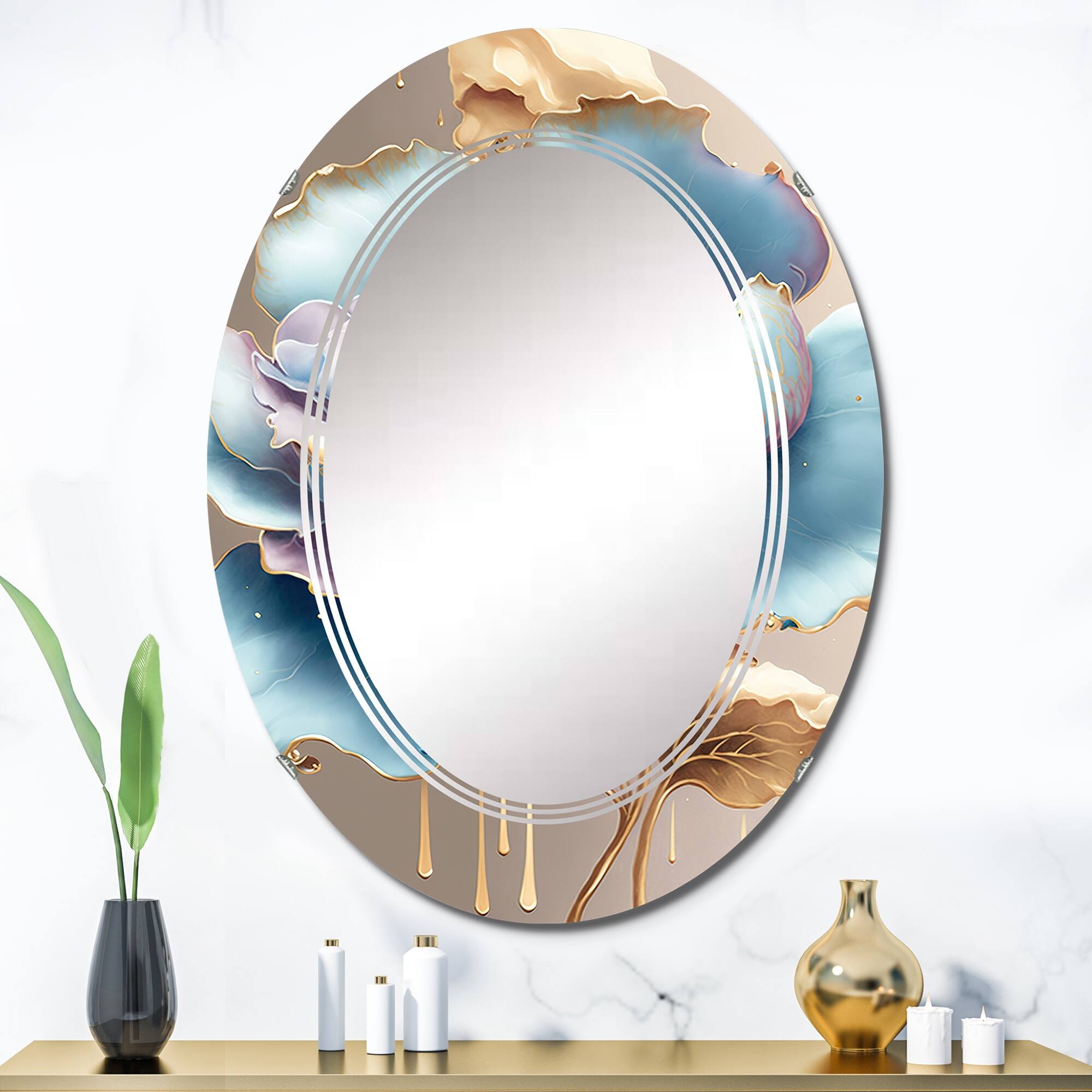 Designart 'Ice Blue And Purple Watercolor Flower III' Printed Floral Wall Mirror