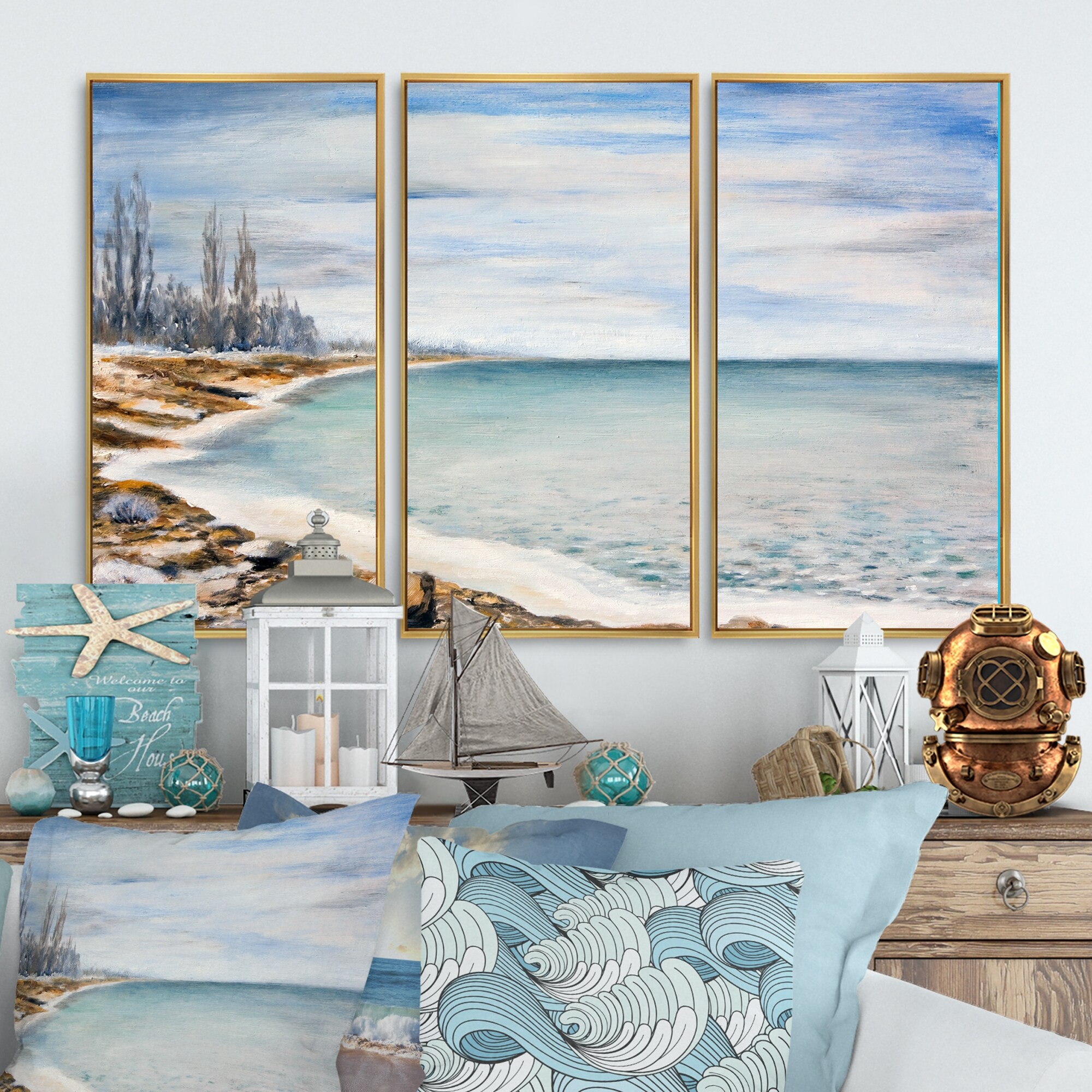 Designart "Sea Is Covered With Ice" Nautical & Coastal Framed Canvas Wall Art Set of 3 - 4 Colors of Frames