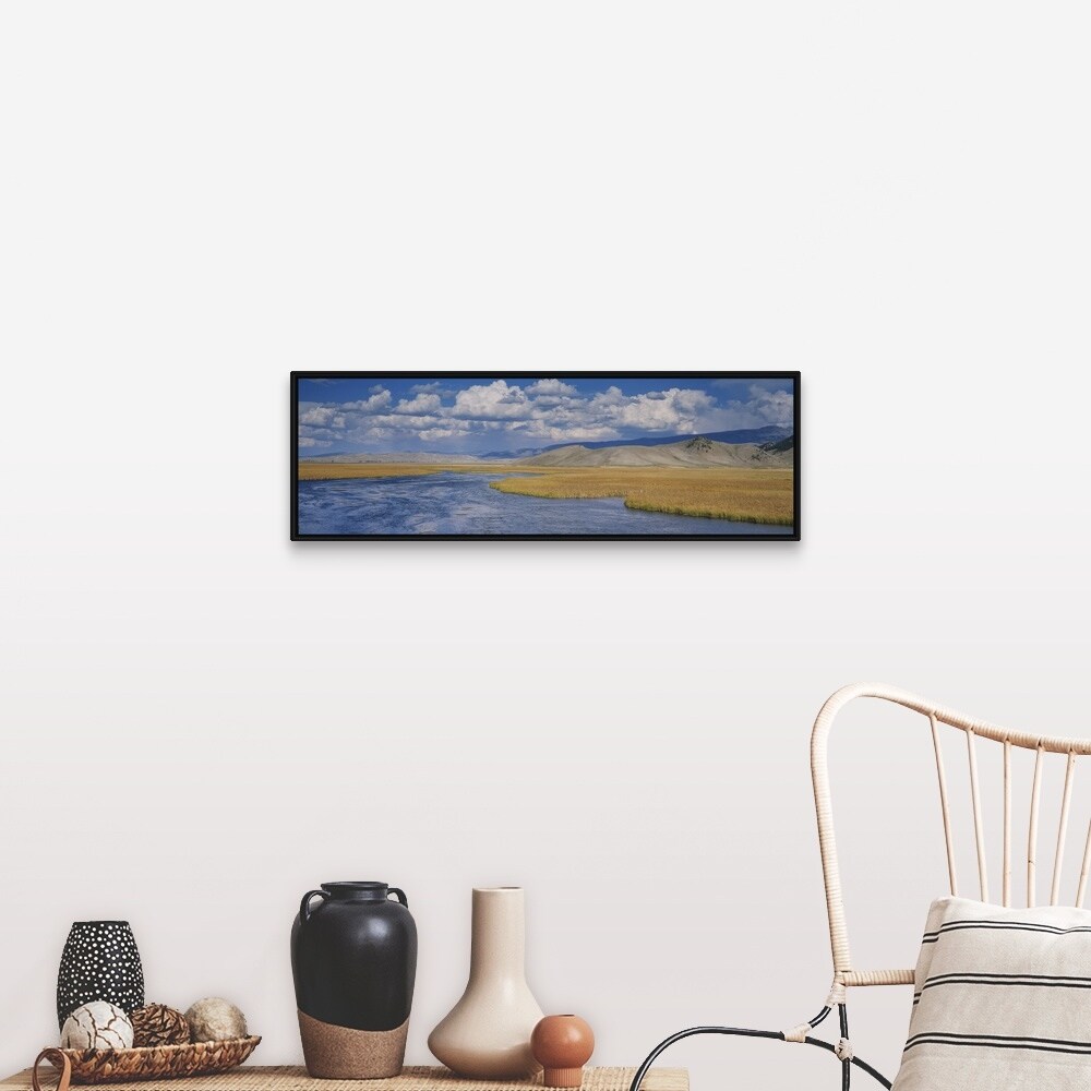 "Clouds over a landscape, National Elk Refuge, Jackson Hole, Wyoming" Black Float Frame Canvas Art