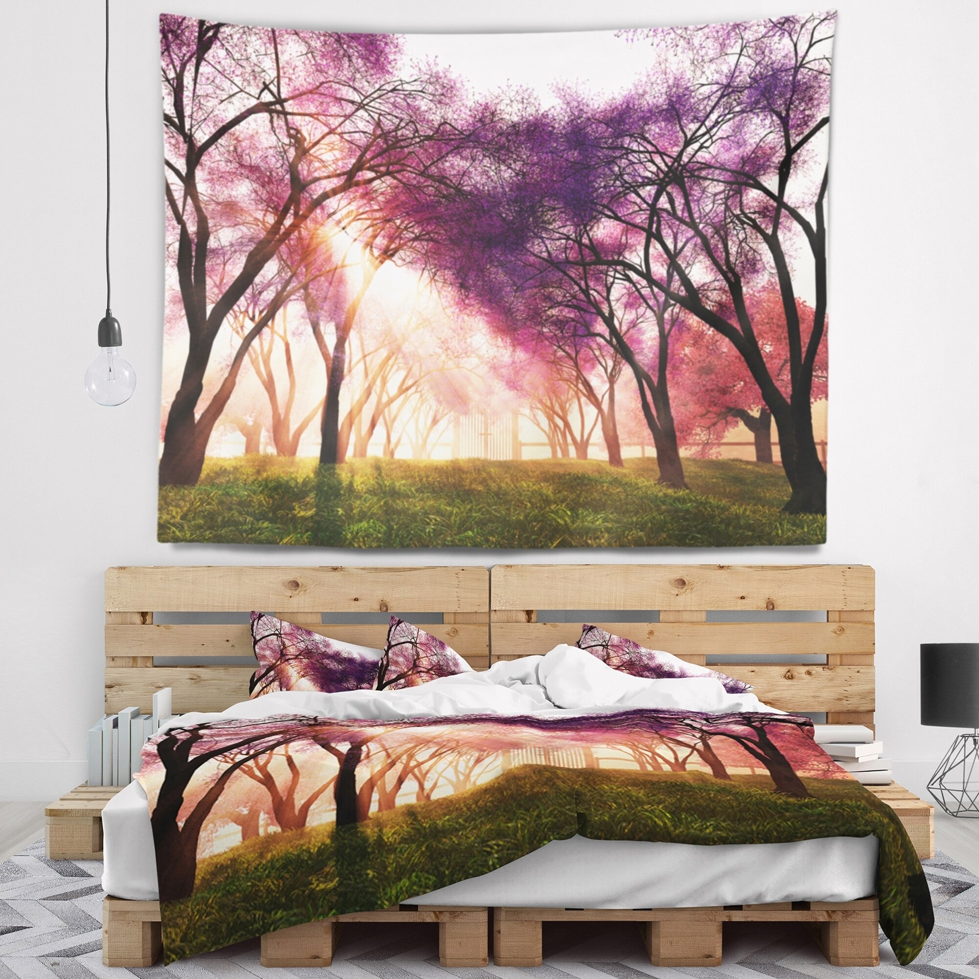 Designart 'Cherry Blossoms Japan Garden' Landscape Wall Tapestry