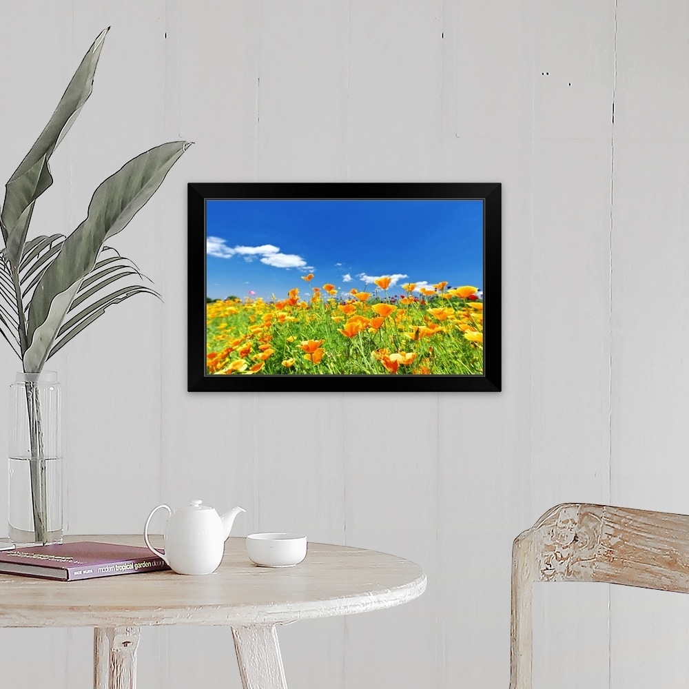 "Poppies in field, Kanagawa Prefecture, Japan" Black Framed Print