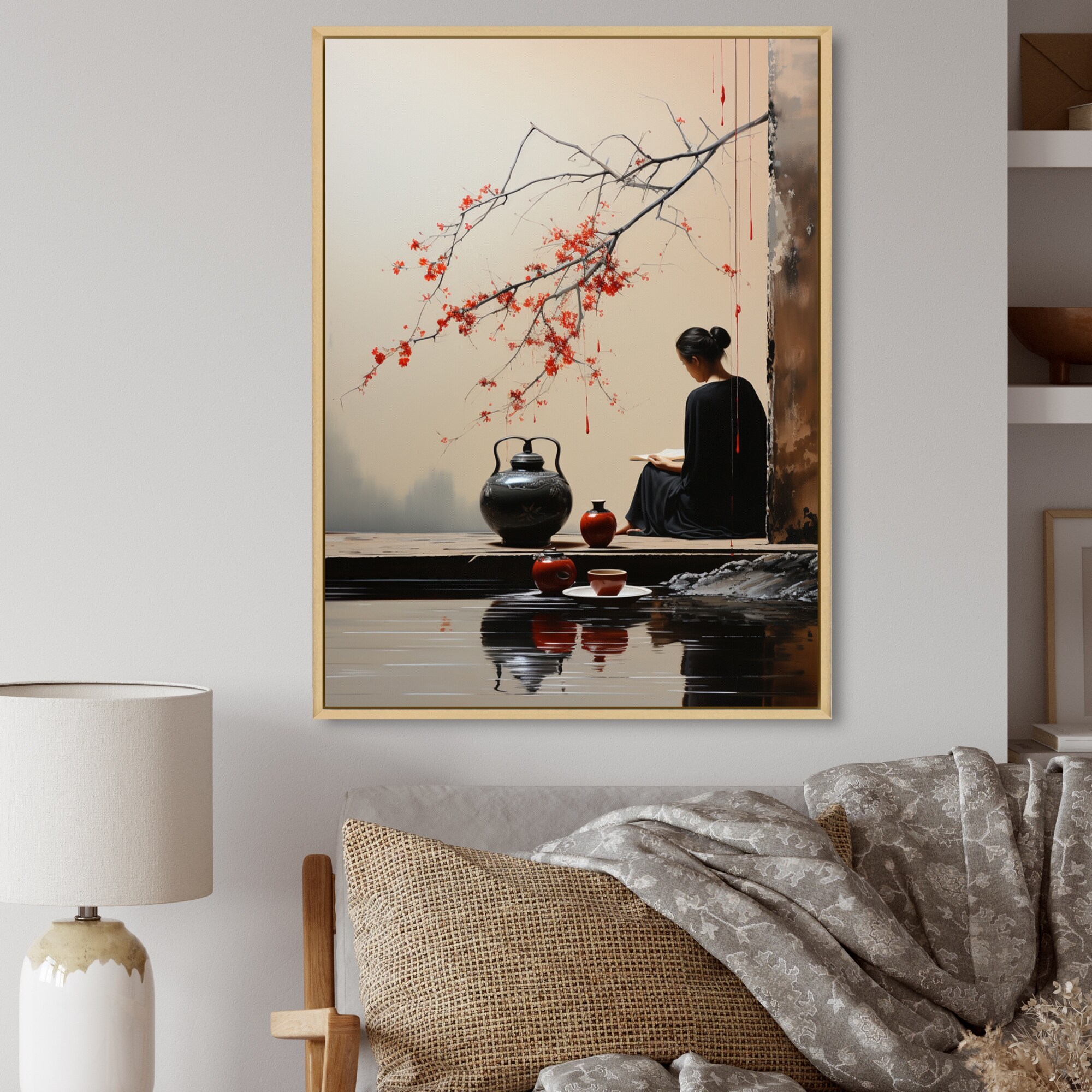 Designart "Japon Art Tea Ceremony II" Japan Art Framed Wall Art Living Room