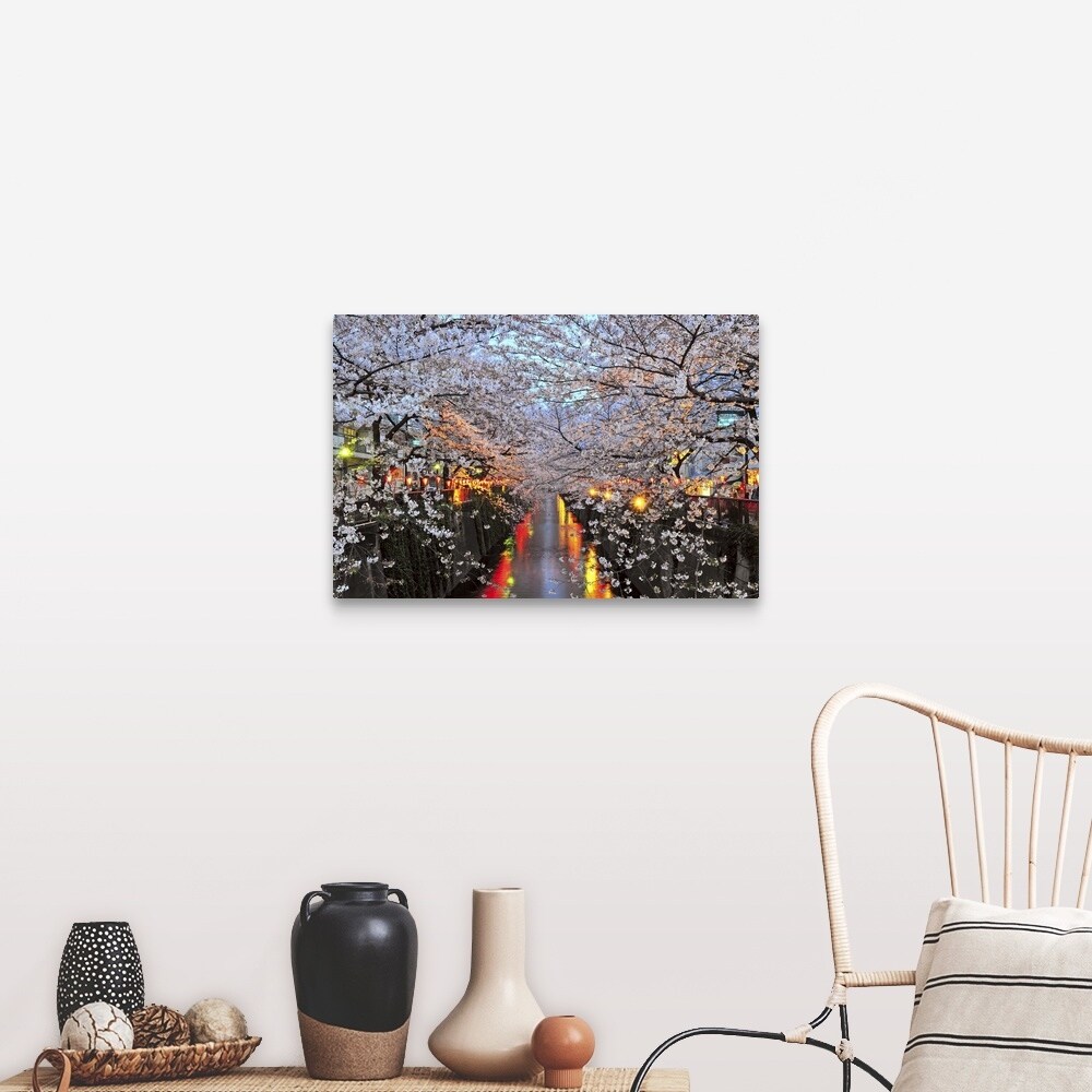 "Cherry blossoms in Naka Meguro during the evening, Japan" Canvas Wall Art