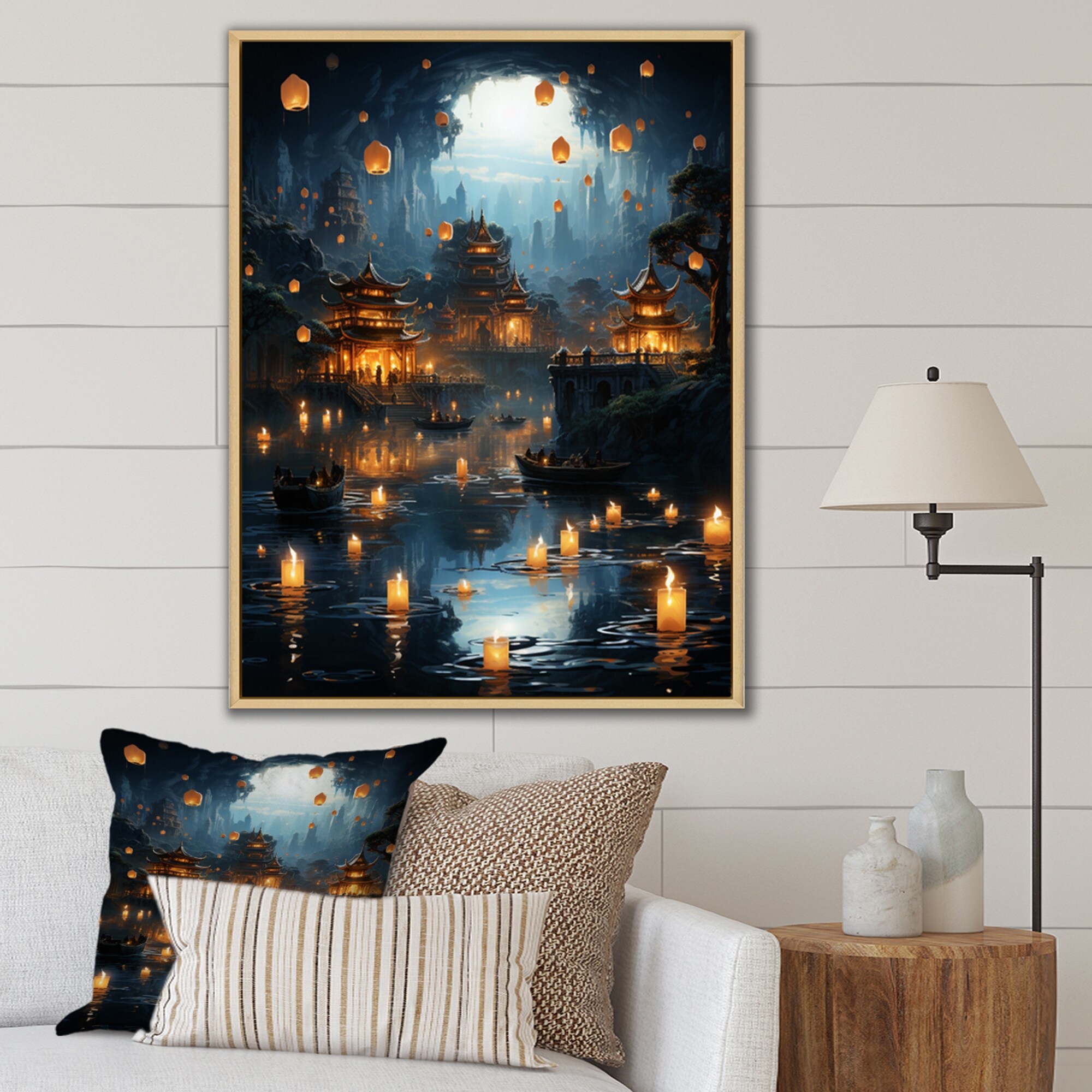 Designart "Japon Art Sea of Lanterns III" Japan Art Framed Wall Art Prints