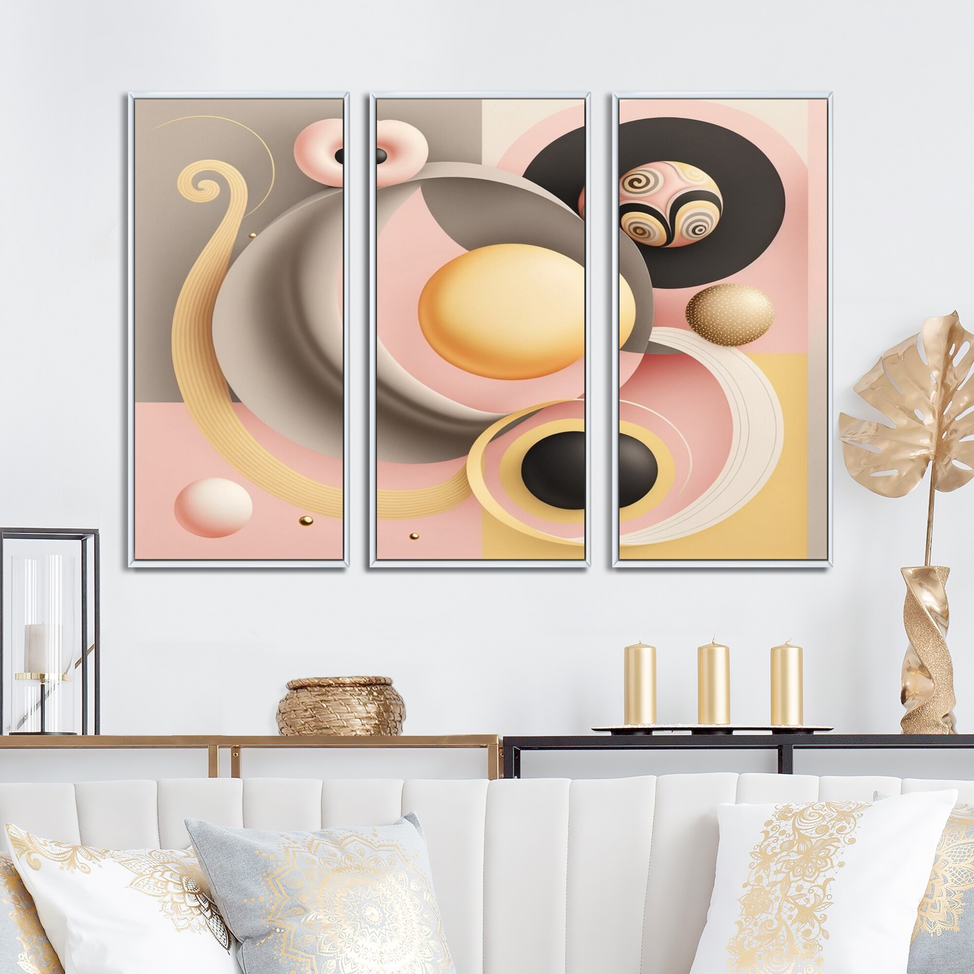Designart "Dance Of the Golden Sphere" Modern Abstract Framed Canvas Wall Art Print - 3 Panels