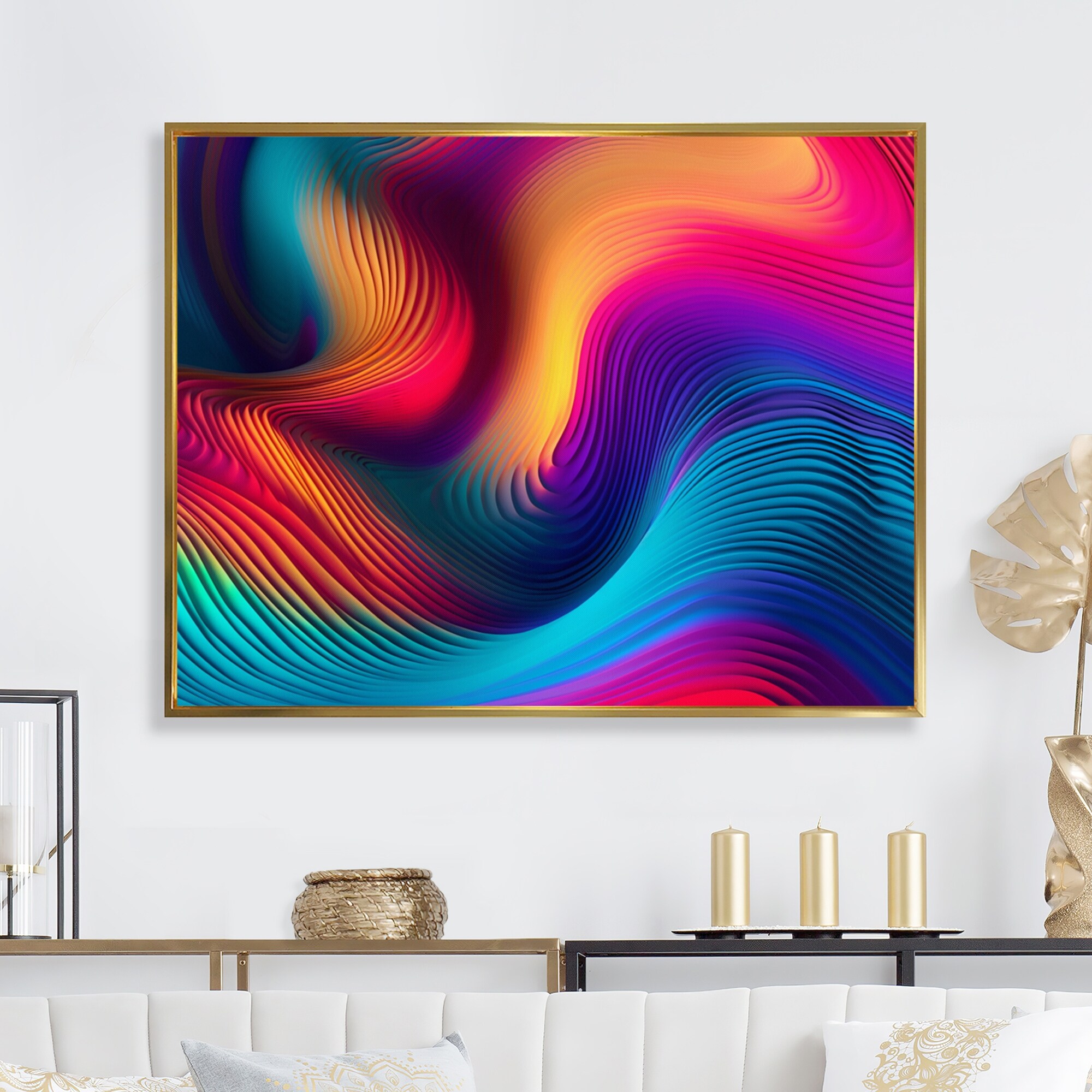 Designart "Blue Pink Dancing Colors" Modern Waves Framed Wall Art Prints