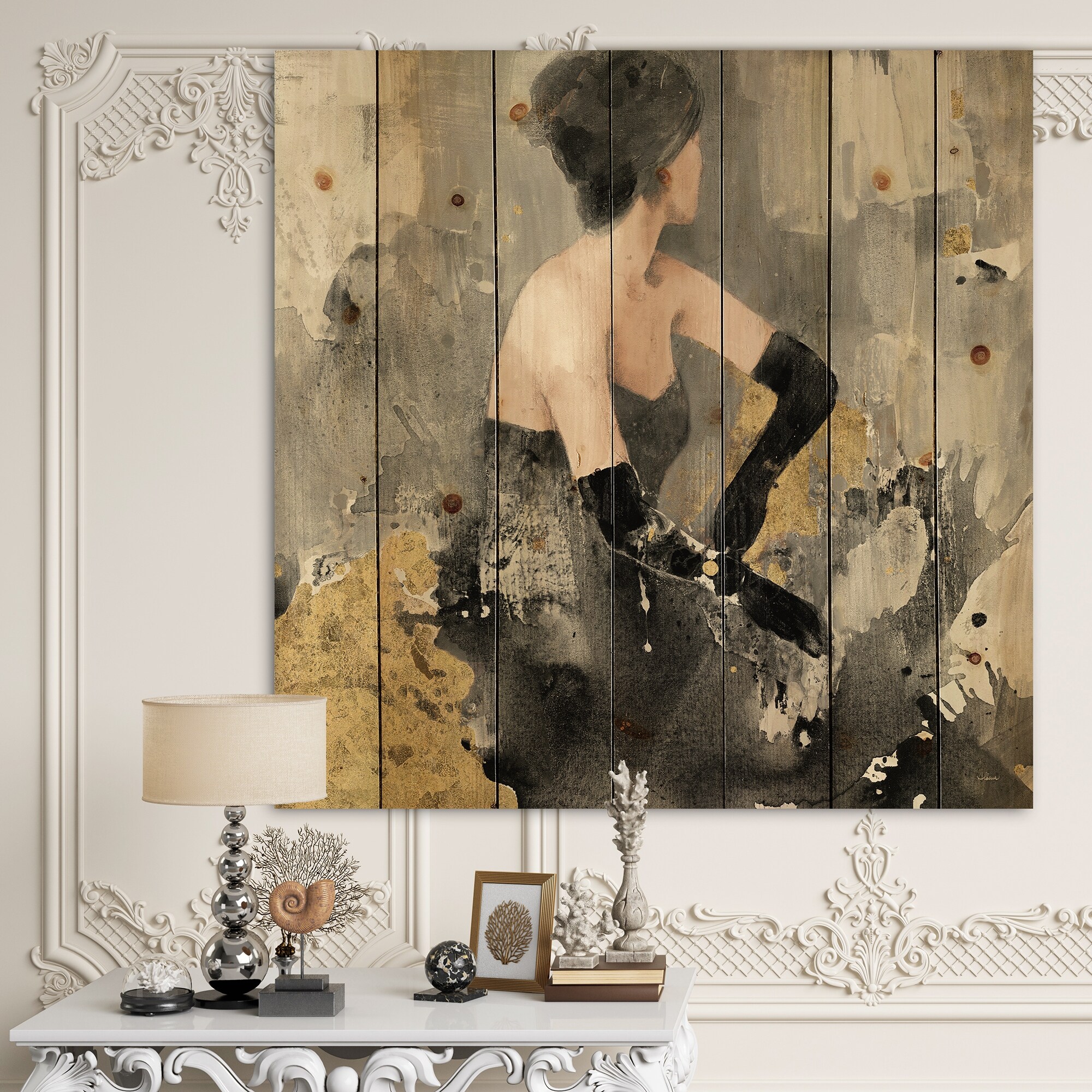 Designart 'Gold Fashion Dance' Traditional Print on Natural Pine Wood - Black
