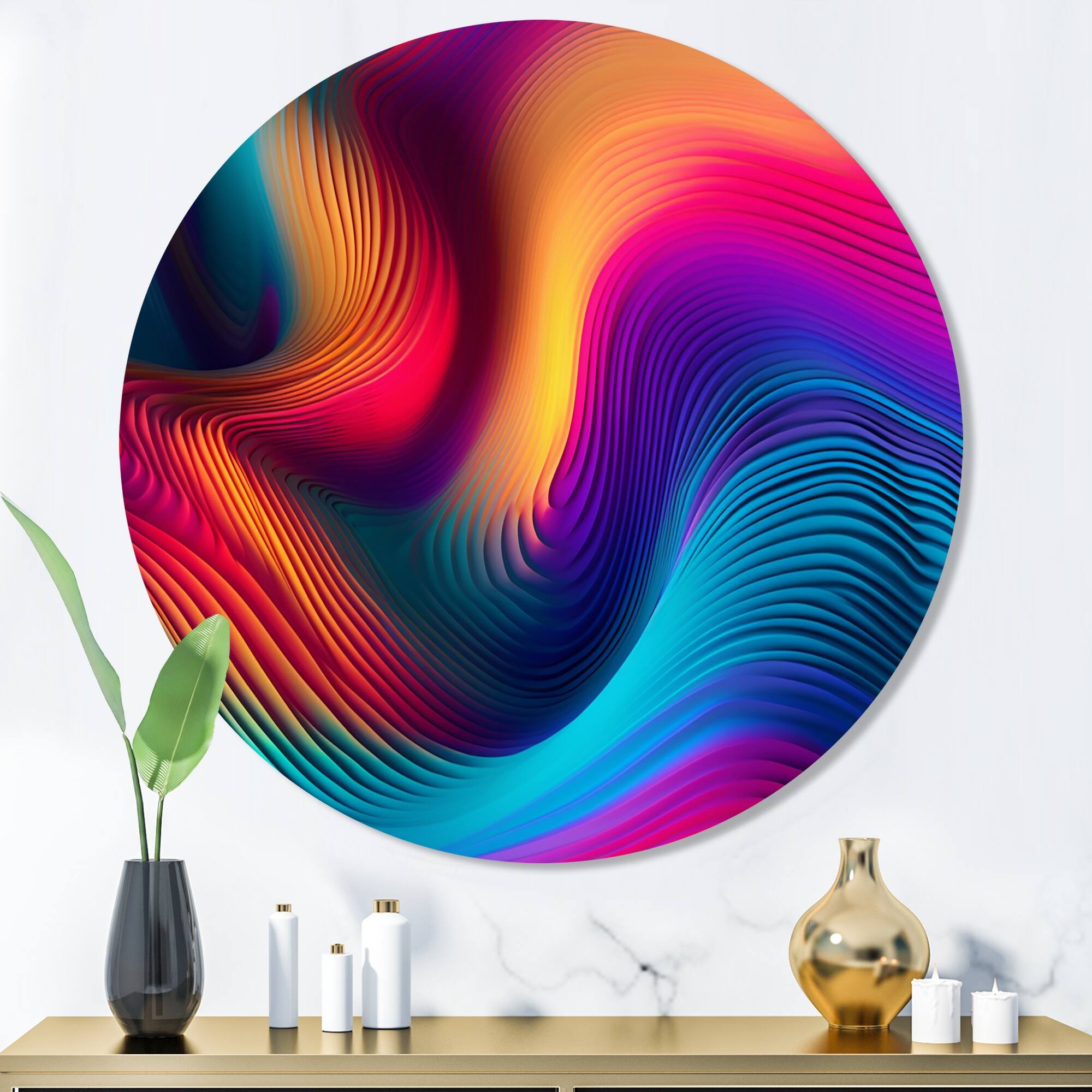 Designart "Blue Pink Dancing Colors" Modern Waves Metal Round Wall Art