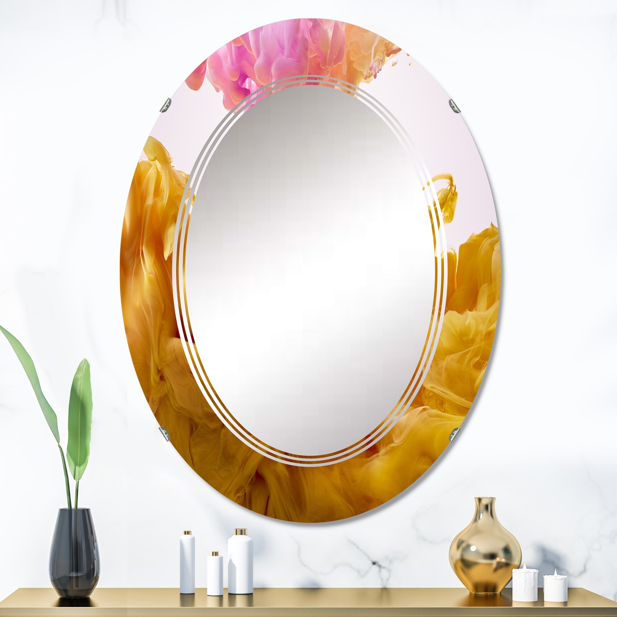 Designart 'Yellow And Pink Dancing Ink Clouds' Printed Modern Wall Mirror