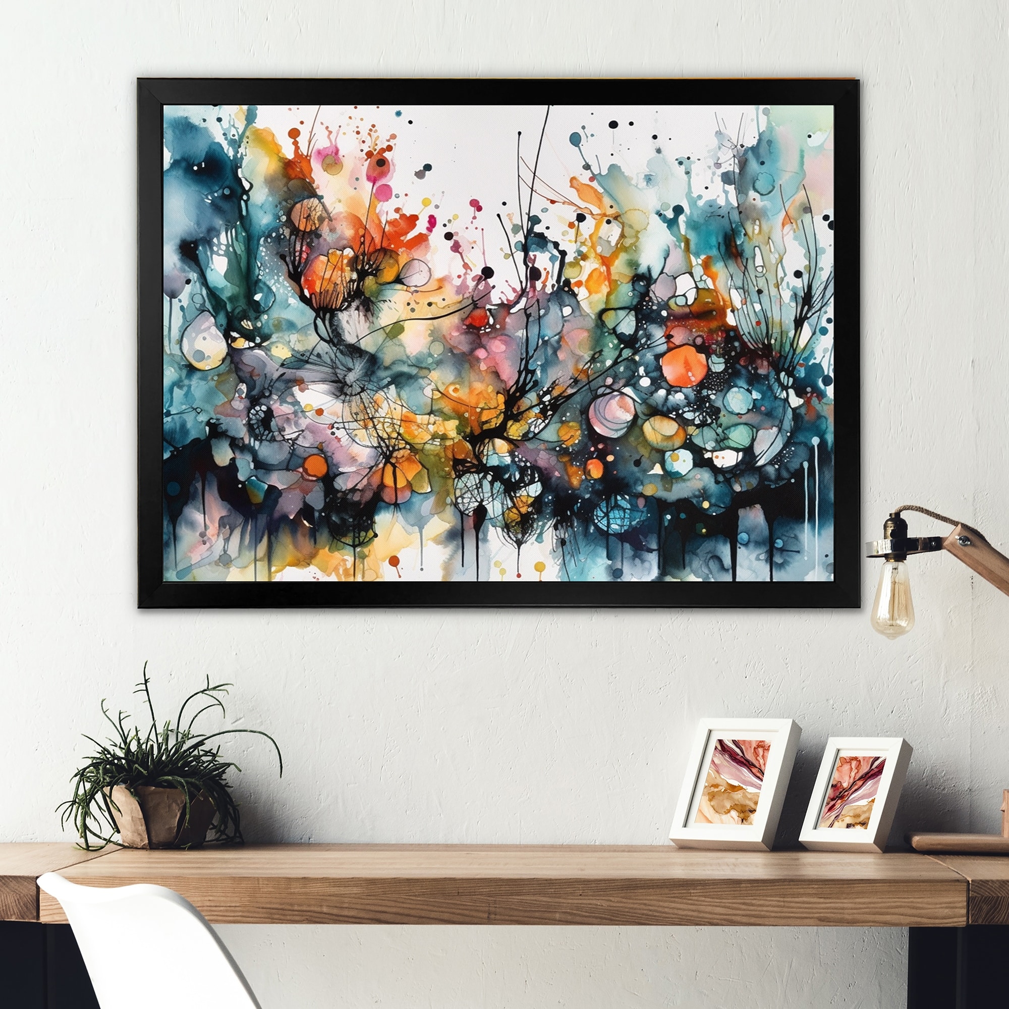 Designart "Orange Blue Dancing Colors Ii" Minimalism Framed Wall Decor