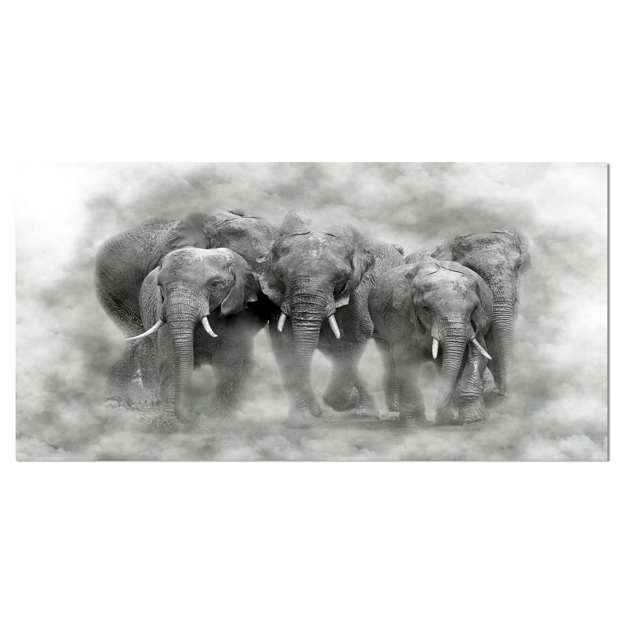 Designart "Three Elephant Kenya National Park in smoke" Sketch Animals Photography on Wrapped Canvas