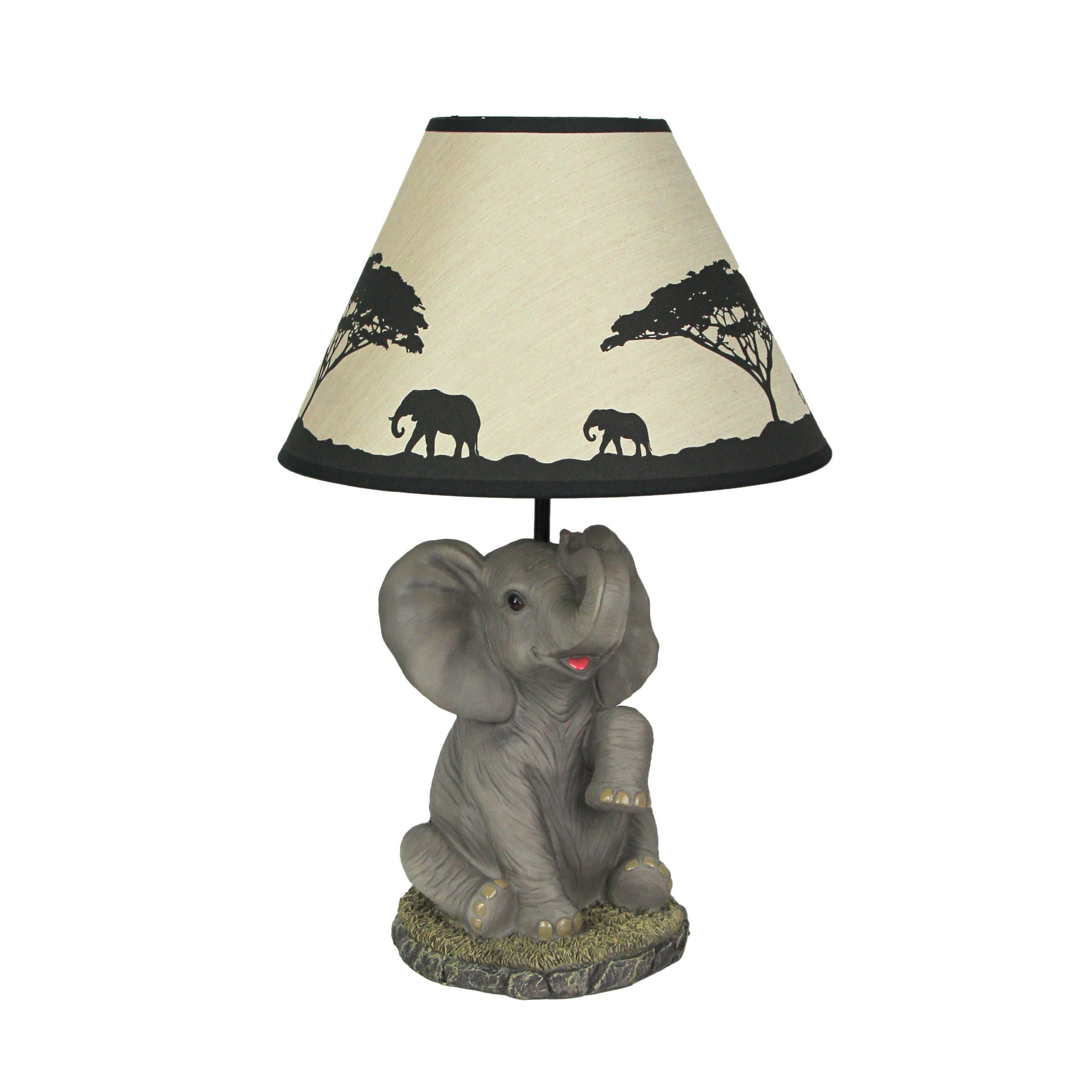 Kenya's Glow African Elephant Sculptural Table Lamp W/Decorative Shade - 18.5 X 12.25 X 12.25 inches
