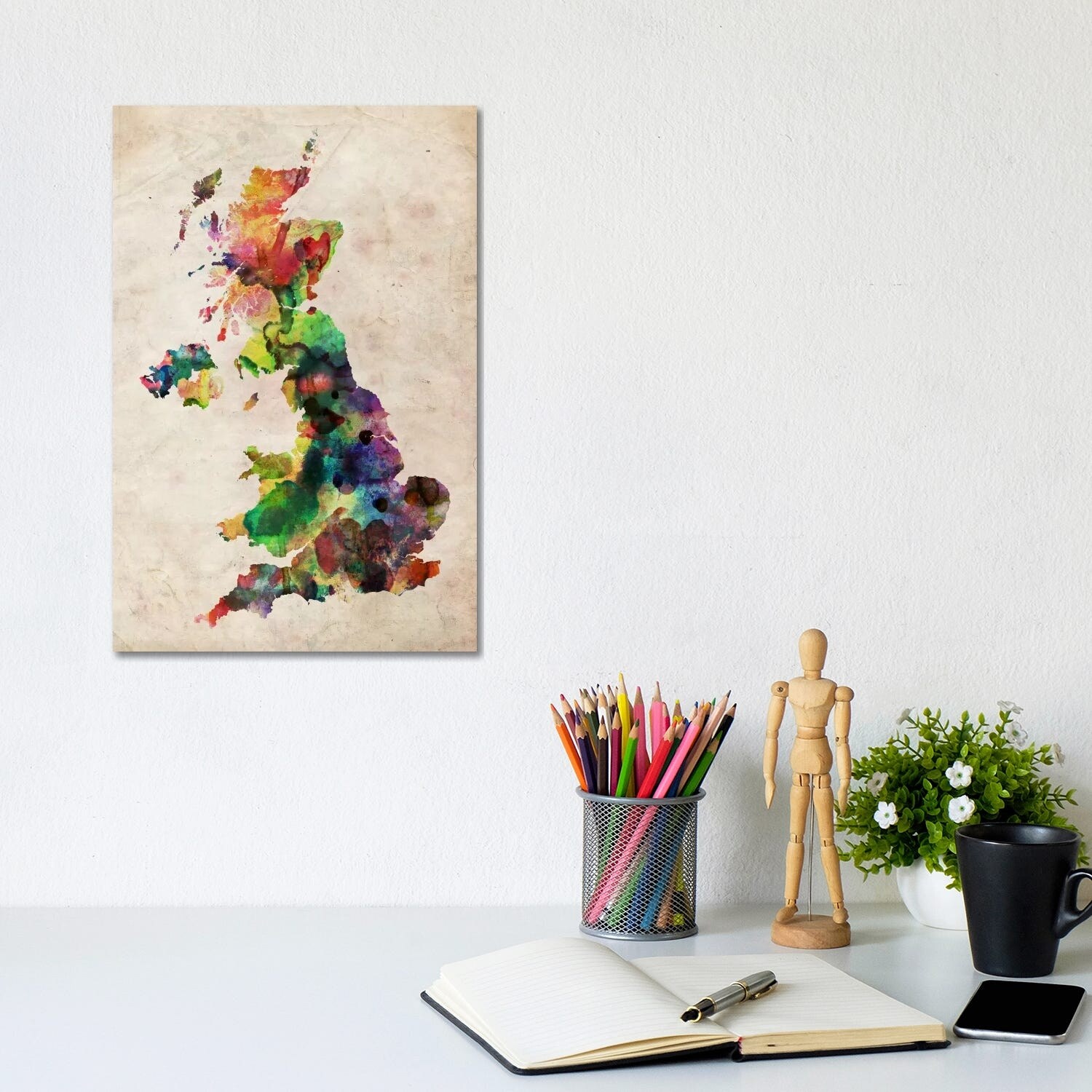 iCanvas "United Kingdom Watercolor Map" by Michael Tompsett Canvas Print
