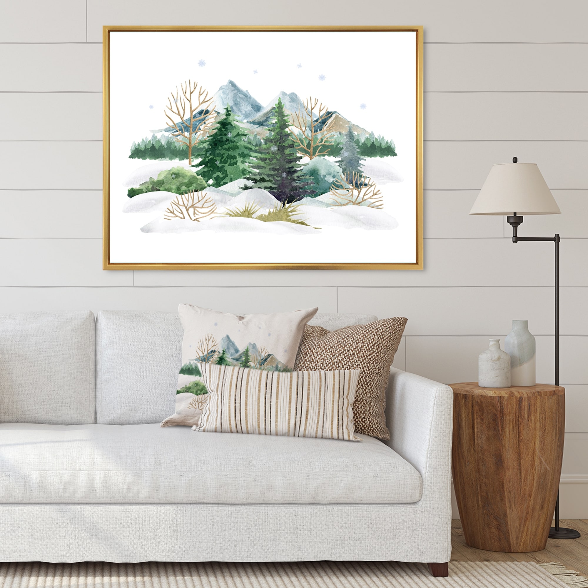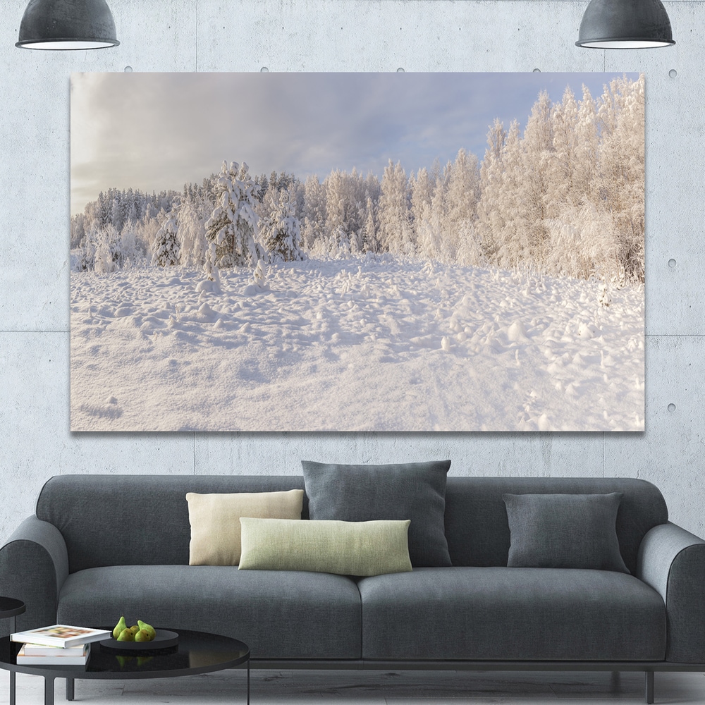 Designart "Winter Forest Landscape Nature Scene" Country Framed Canvas Wall Art Print