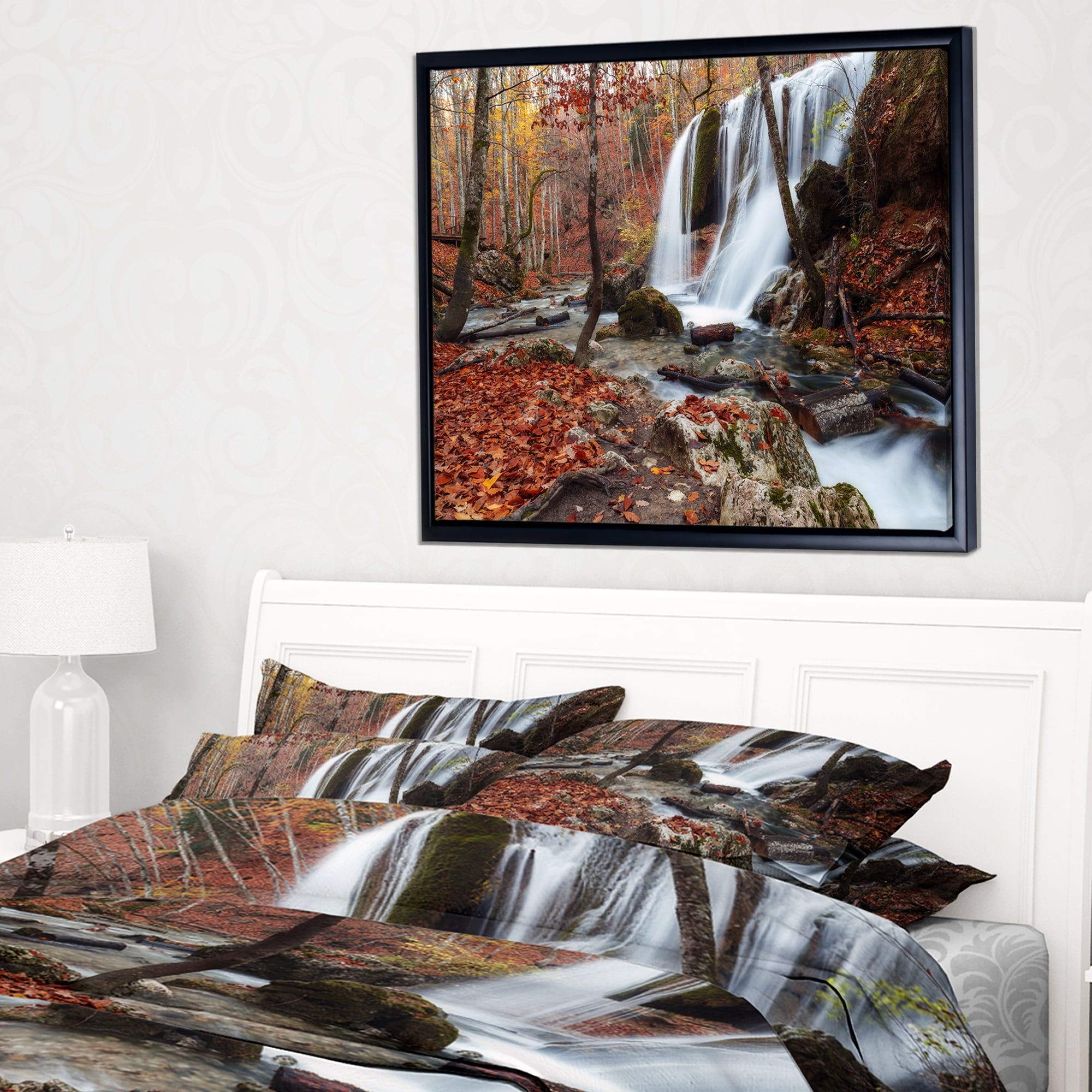Designart "Waterfall in the Fall" Landscape Photo Framed Canvas Art Print