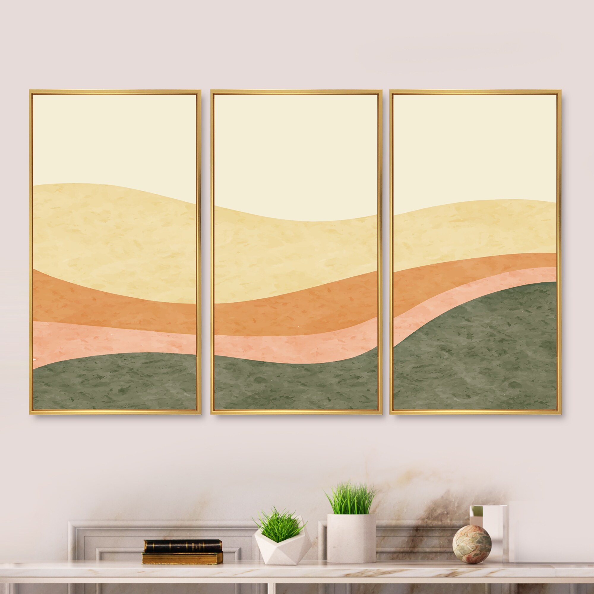 Designart "Minimalistic Retro Landscape II" Modern Framed Wall Decor Set of 3 - 4 Colors of Frames