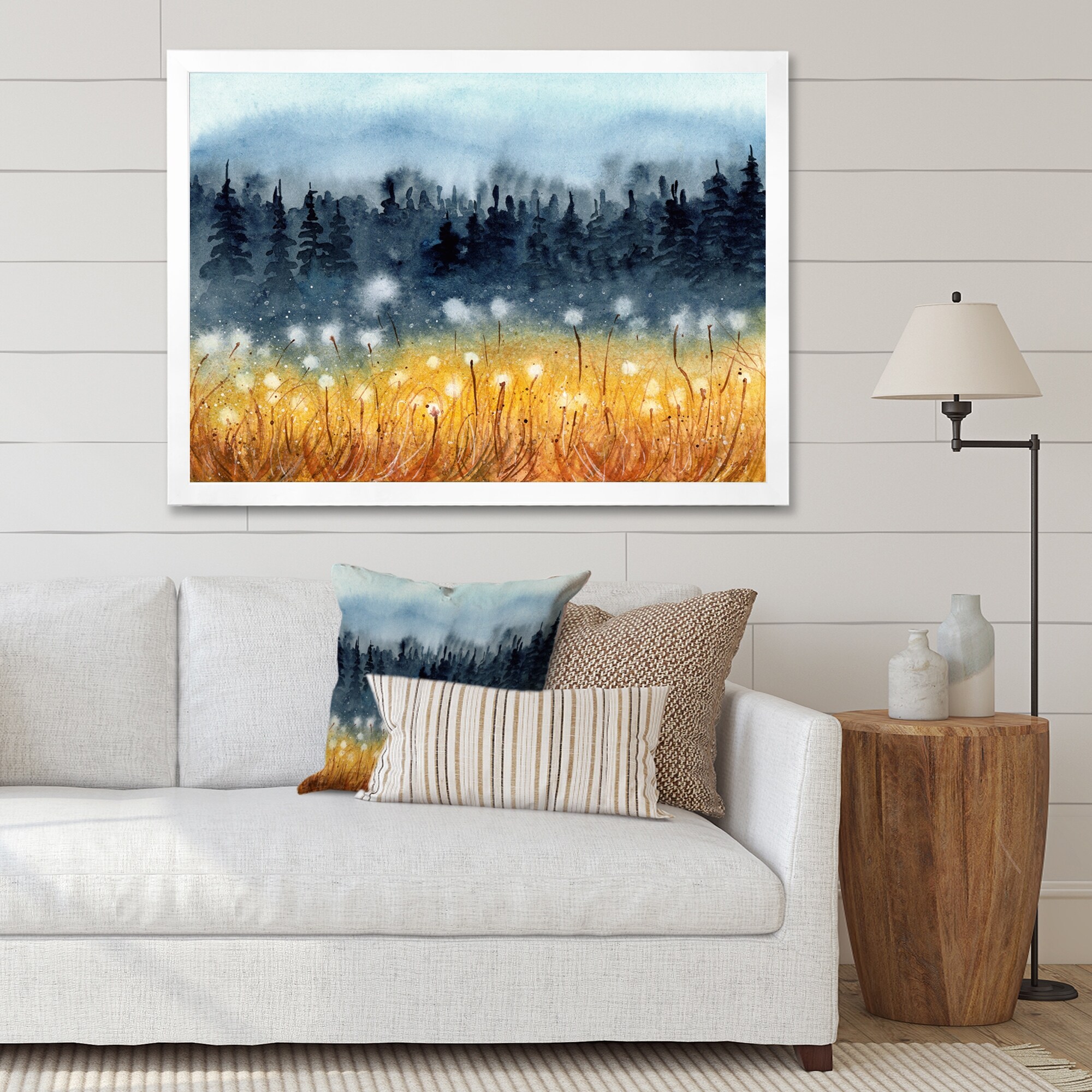 Designart "Landscape With A Field of Yellow Wheat" Traditional Framed Art Print