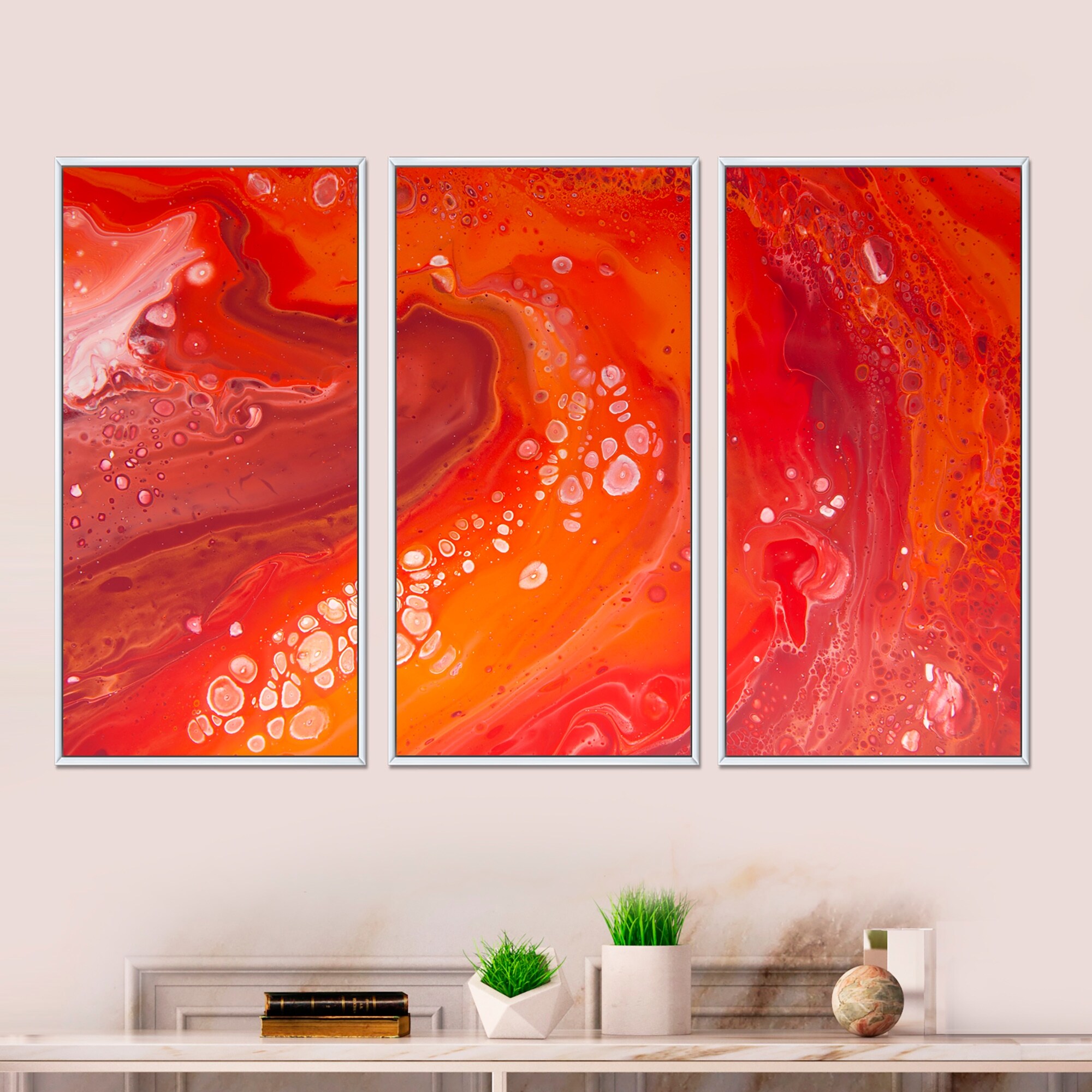 Designart "Vibrant Red Marble Landscape" Modern Framed Canvas Wall Art Set of 3 - 4 Colors of Frames