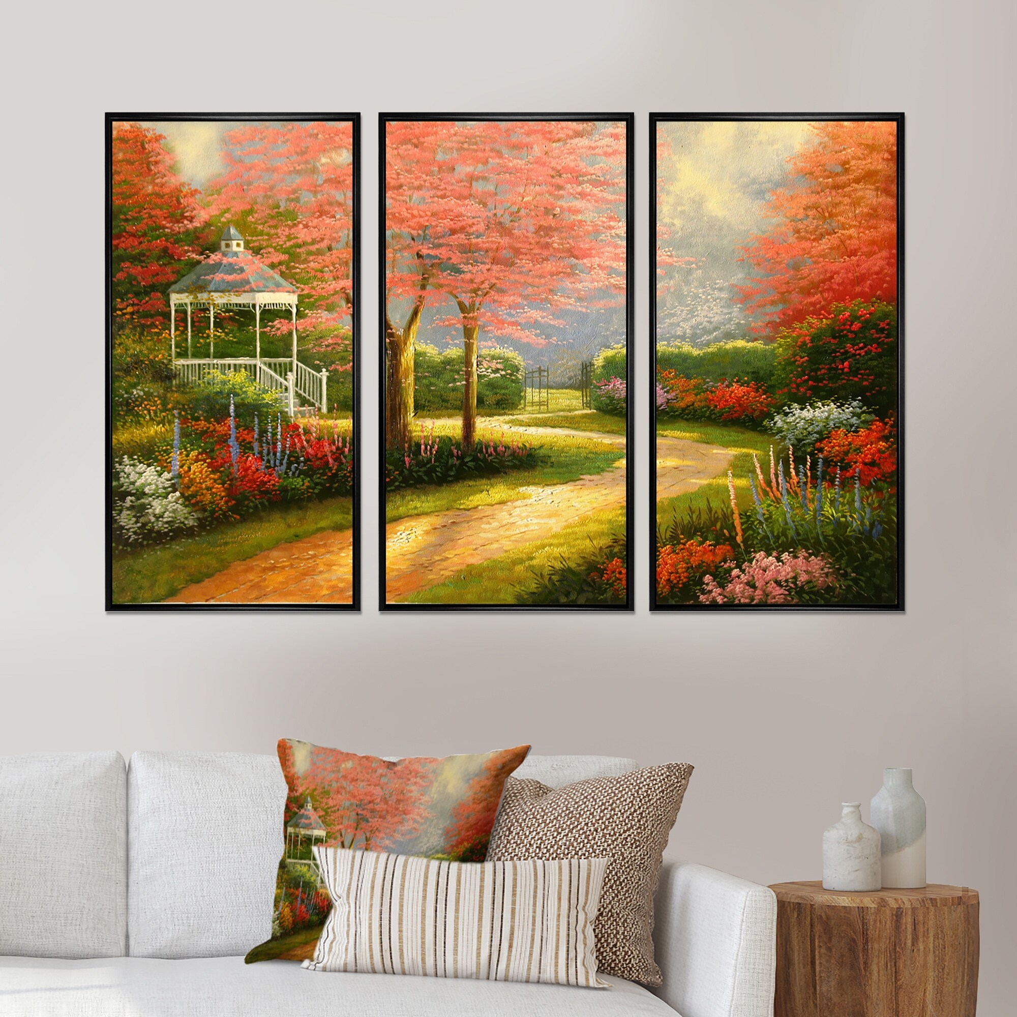 Designart "Pink Tree in Morning Dogwood" Landscape Framed Wall Art Set of 3 - 4 Colors of Frames