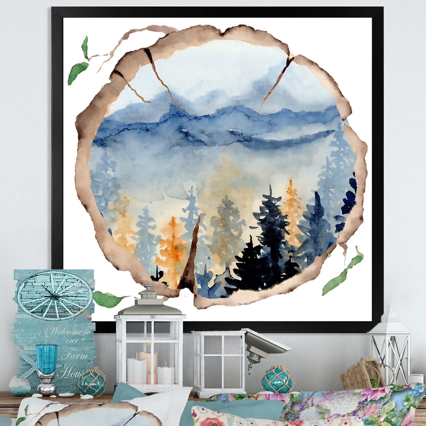 Designart "Surreal Landscape of Green And Blue Trees III" Farmhouse Framed Canvas Wall Art Set of 3 - 4 Colors of Frames