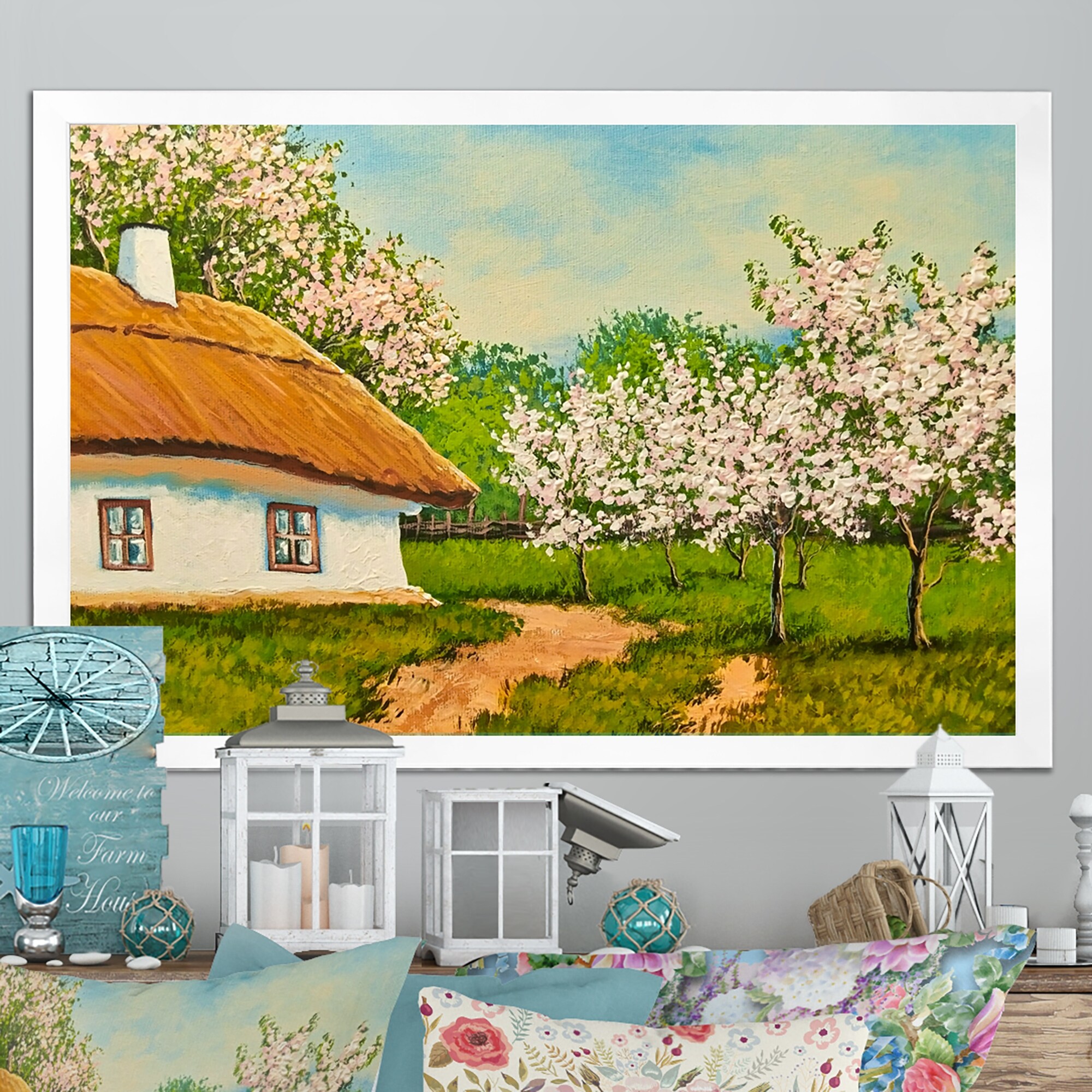 Designart "Spring Landscape House" Traditional Framed artwork