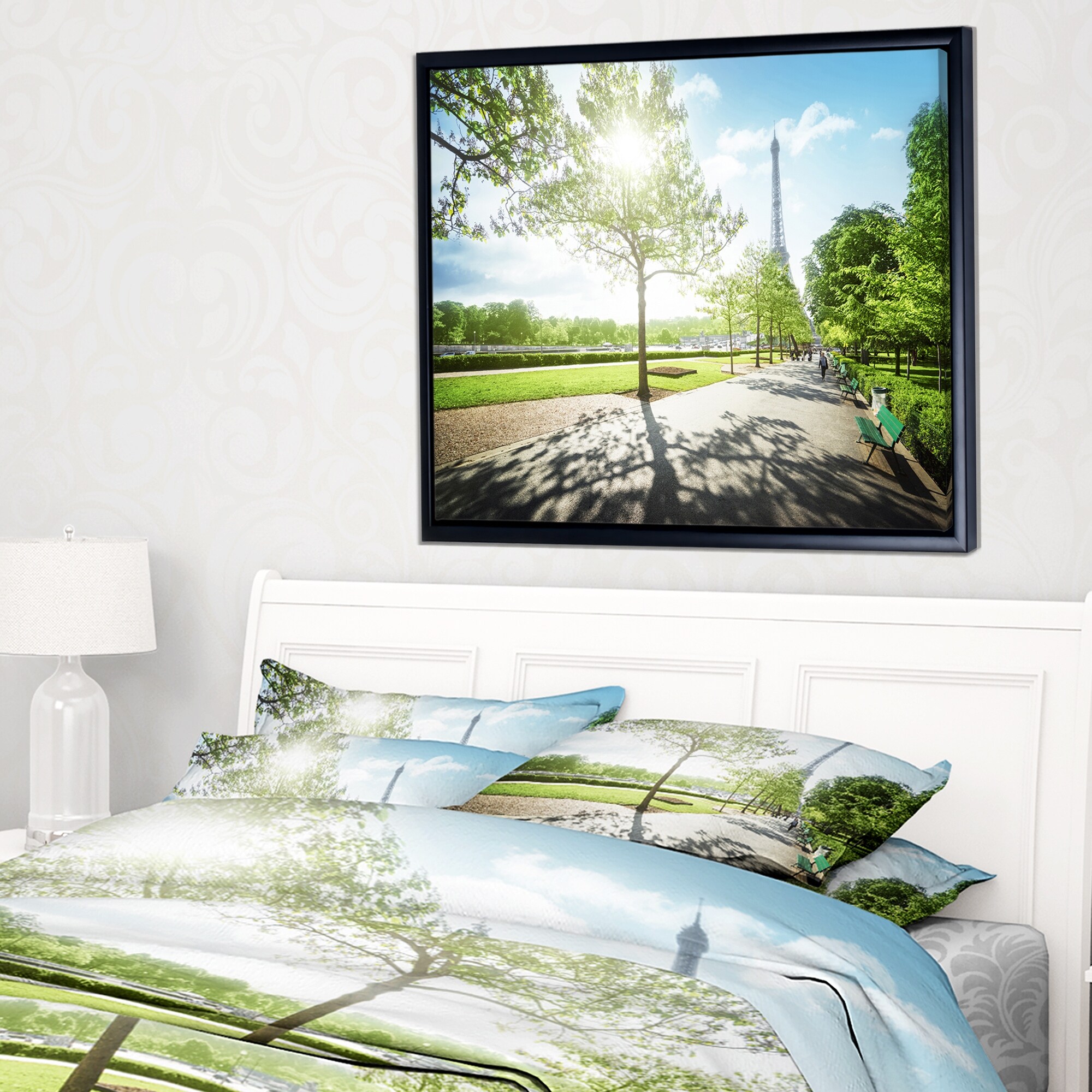 Designart "Paris Eiffel Towerat Sunny Morning" Landscape Framed Canvas Art Print