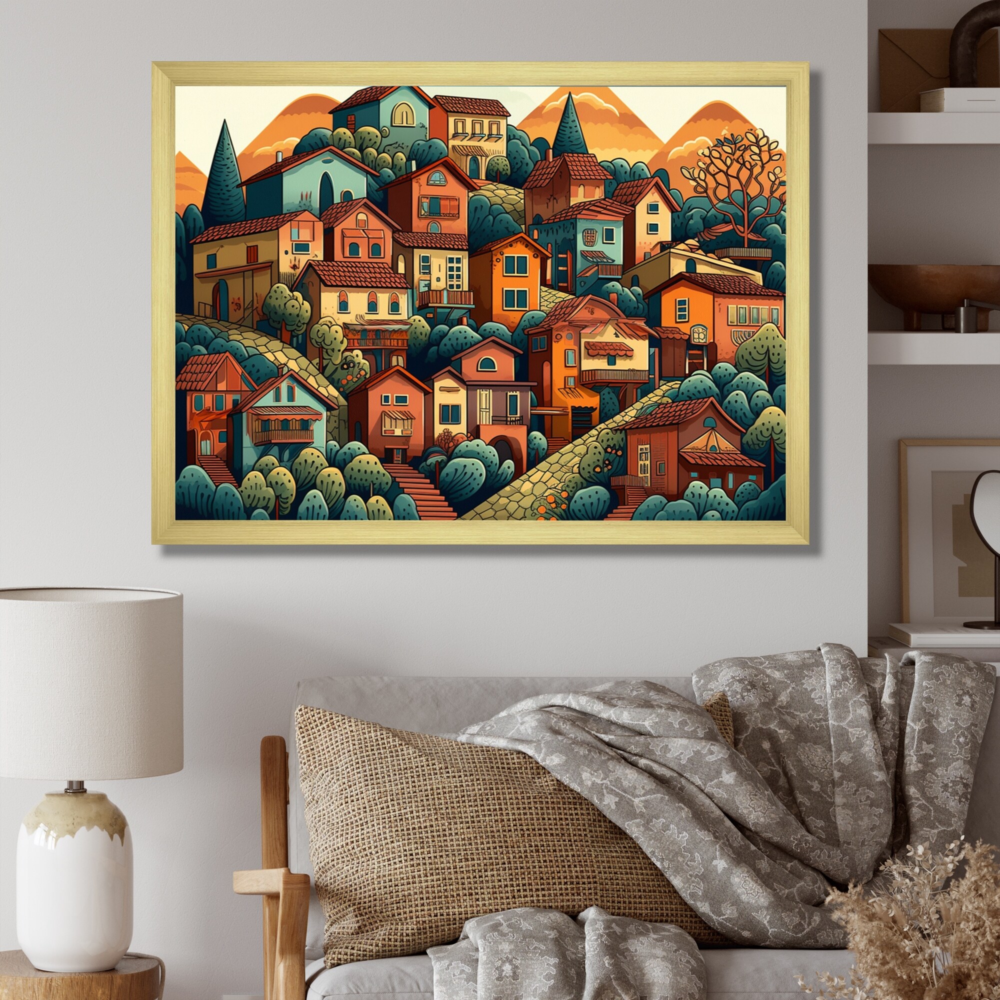 Designart "Small Town Village Iii" Landscape Modern Framed Canvas Art Print