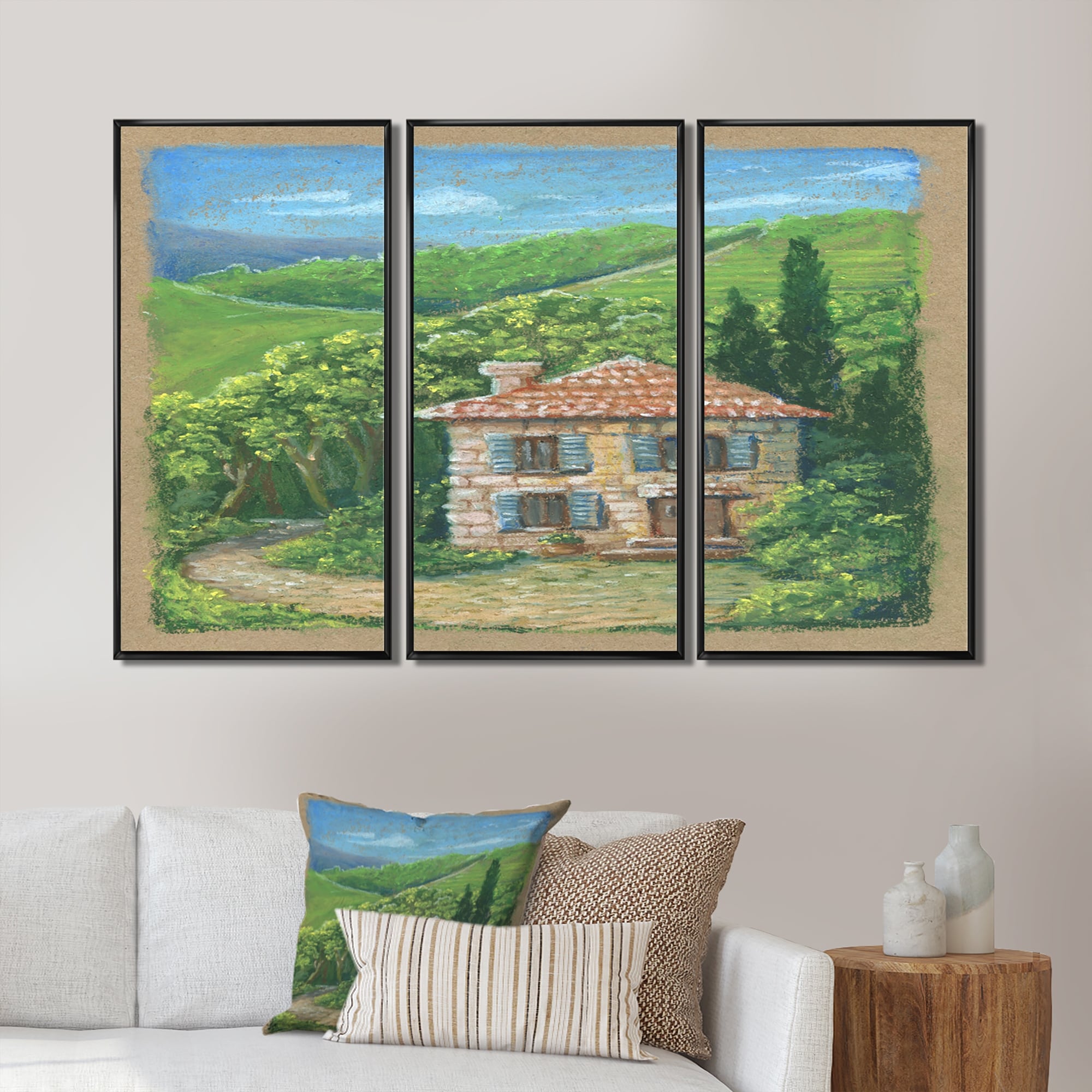 Designart "Beautiful Rural Quiet Pleasant Landscape" Country Framed Wall Decor Set of 3 - 4 Colors of Frames