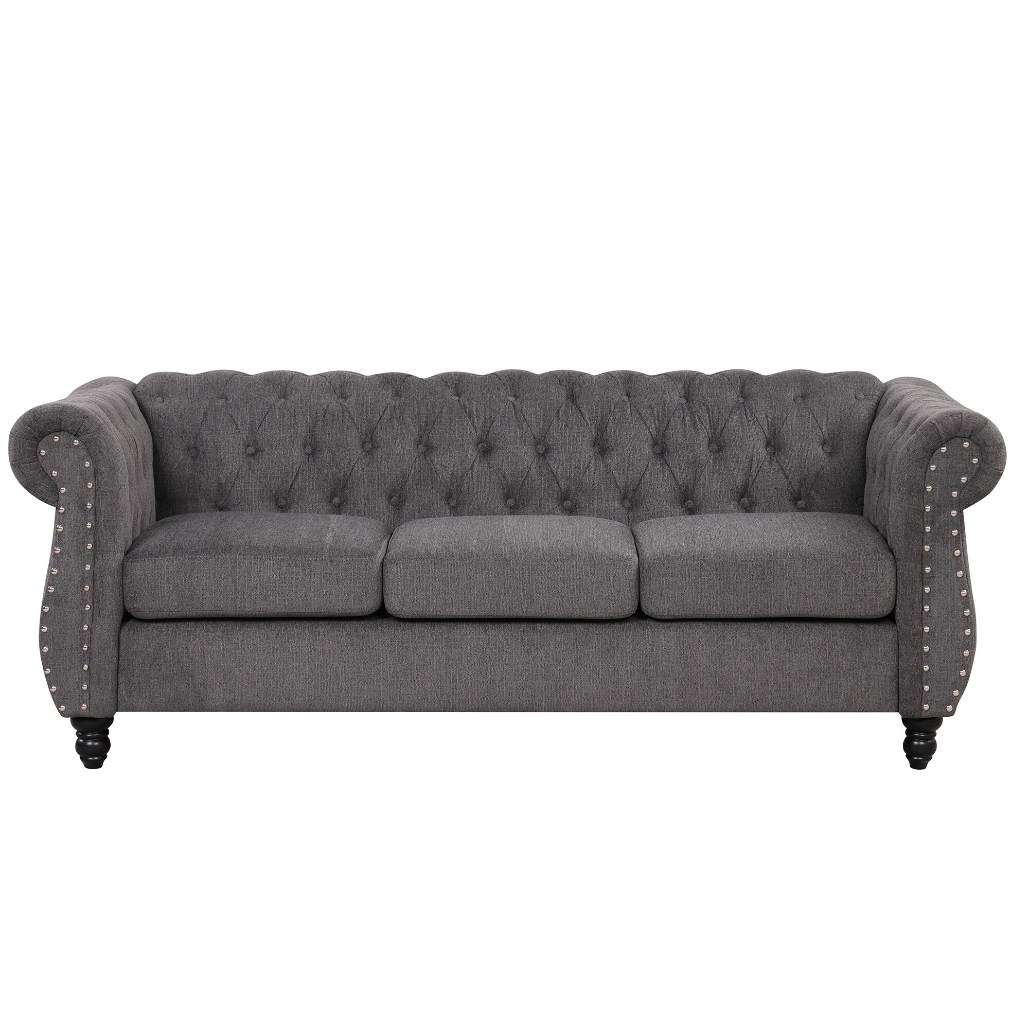 Modern Button-down Tufted Backrest Sofa, 3 Seater Velvet Upholstered Couch with Solid Wood Legs for Living Room