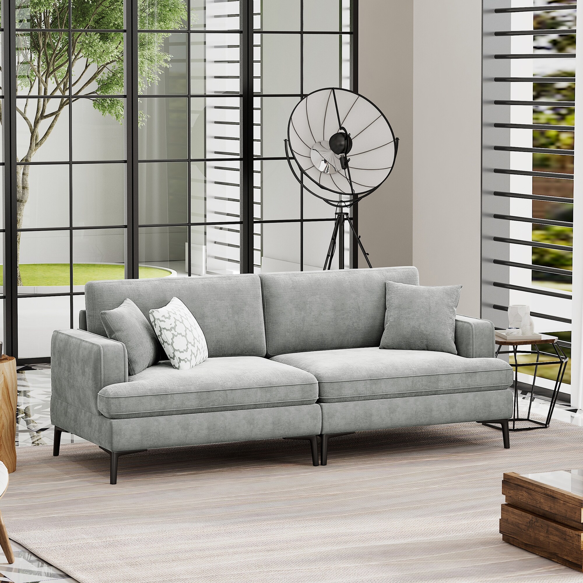80.7" Modern Upholstered Loveseat Sofa with Metal Legs, Including 2 Pillows