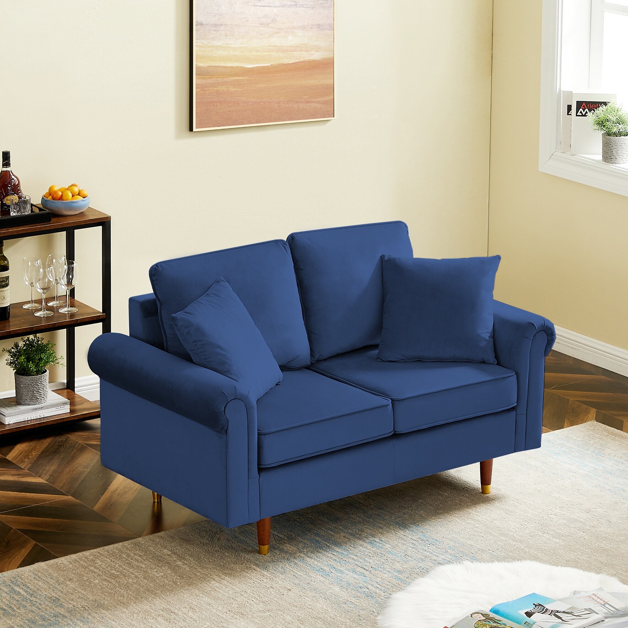 55.12" Velvet Loveseat Sofa with 2 Pillows, Thickened Padding Cushions and Solid Rubber Wood Legs
